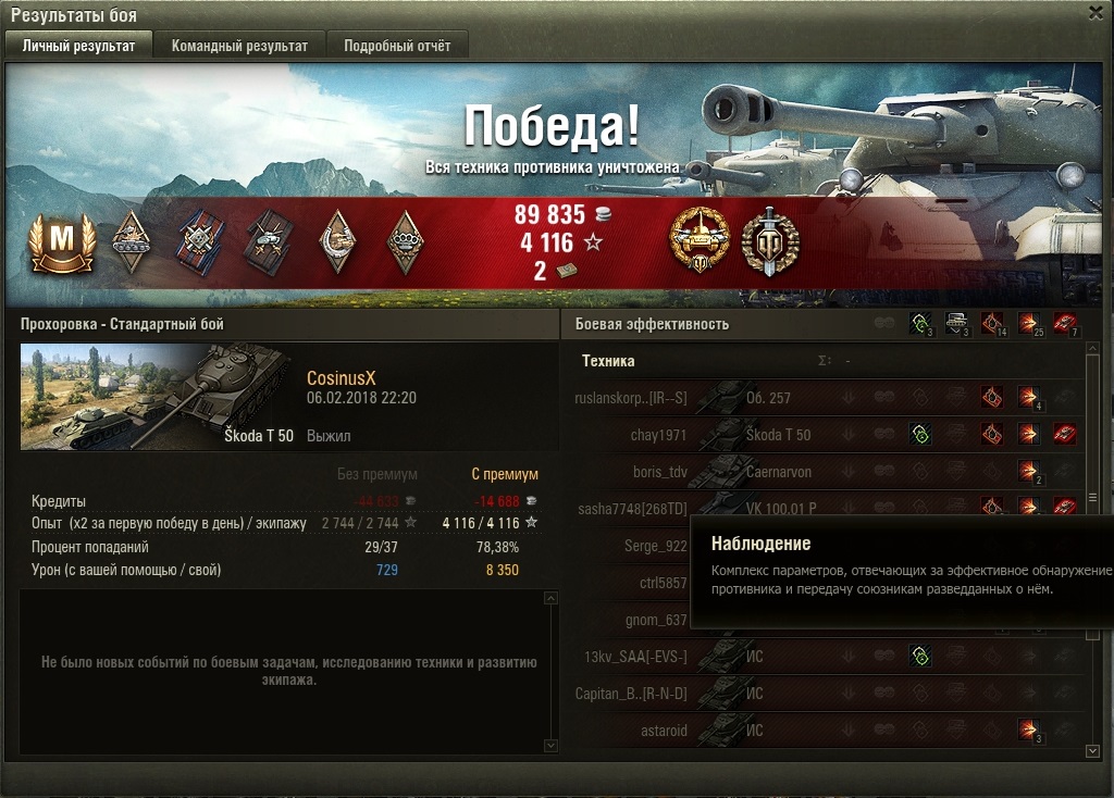Серия..у меня вчера 2200 средний и 5 побед в 7 боях, команда тащила, а сам ничего не мог. Очень хочу до конца прокачки сделать 2600 среднего, но, видимо, не для моих рук :)) 2550, 2530, 2520..не могу, короче) может, голдой начать палить и премрасходник поставить? или нечего на зеркало пенять, коли рожа крива?))