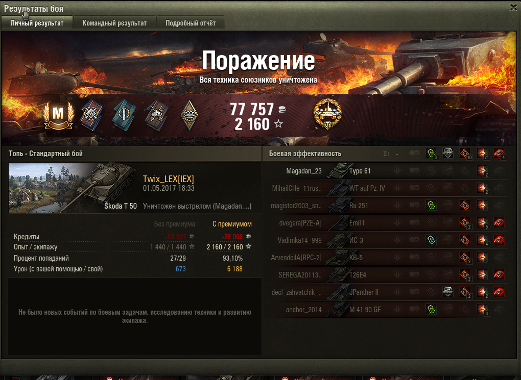 Да что у меня за беда с этим танком?:( Вроде имбочкой считается, думал нагибать буду:D. На Бате9 за 400 с лишним боев 58 ПП, а на Шкоде полный провал. По характеристикам чех получше выглядит, играть на нем вроде покомфортнее, не критуется от каждого чиха в твою сторону, а что-то не получается. Может подскажете в чем может быть причина.
