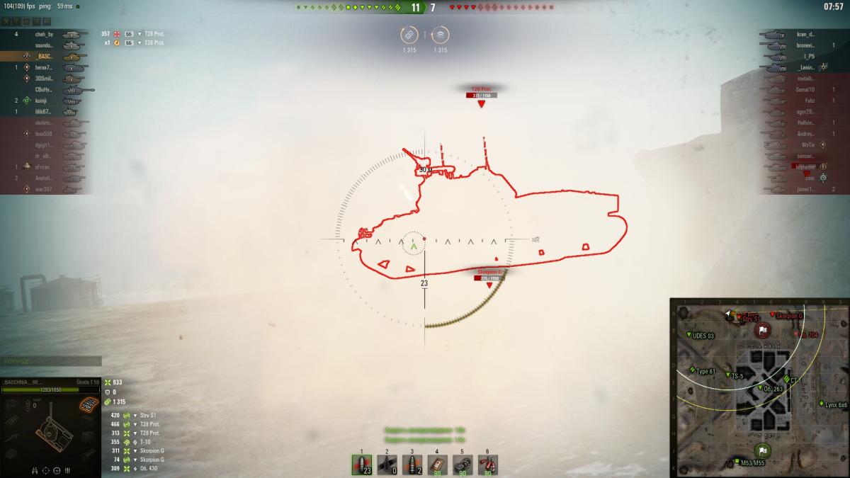 Танк очень косой, стрелять на расстояние не реально из 3 выстрелов 1 пробой 2 гусеница. Разброс снарядов просто по краям круга.