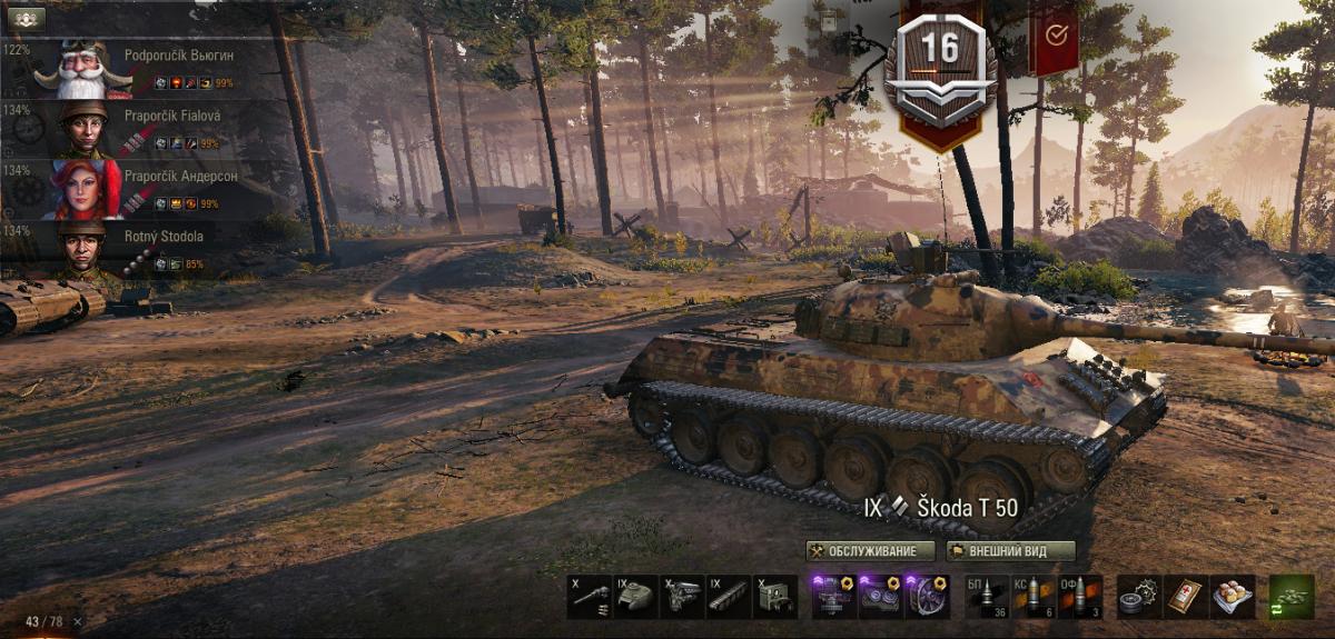 Экипаж 4 перка почти,как раз 4 перком качается ремонт.ББ,перки на стаб,маскировка,ремонт.Не жалуюсь,средуха самая заурядная,но танк играется комфортно и в удовольствие