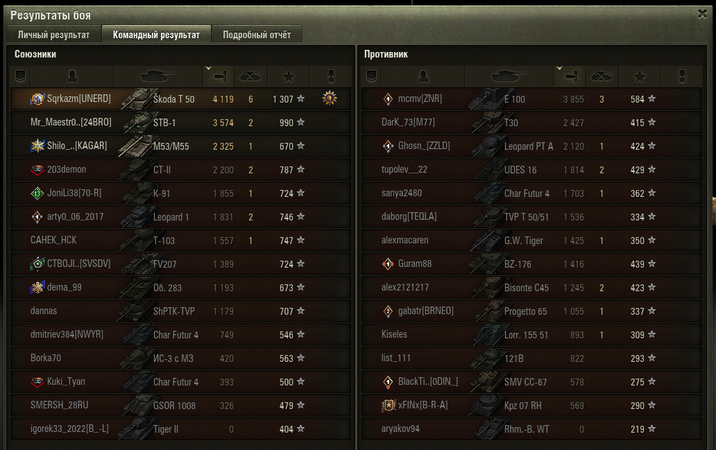 Не знаю, моя психика не выдерживает такого. Такая же фигня была и с Тортом - отличный танк, но команды. И самое интересное что на других танках такого ведь нет. Ну да, бывают сливы, по 2 и даже по 3 подряд, но потом нормализуется. Здесь же старт даже хуже чем на Торте - только 33% побед после 24 боев. Короче продал. Жалко конечно, потратил все чертежи на него, с мечтой о Позорвагоне распрощался, ибо теперь в лучшем случае необходимое количество чертежей я получу только в следующем БП. Да и нужно-ли? Оставлю наверно максимум 10 танков, где экипажи от 6+ перков, вполне достаточно для текущего дурдома.