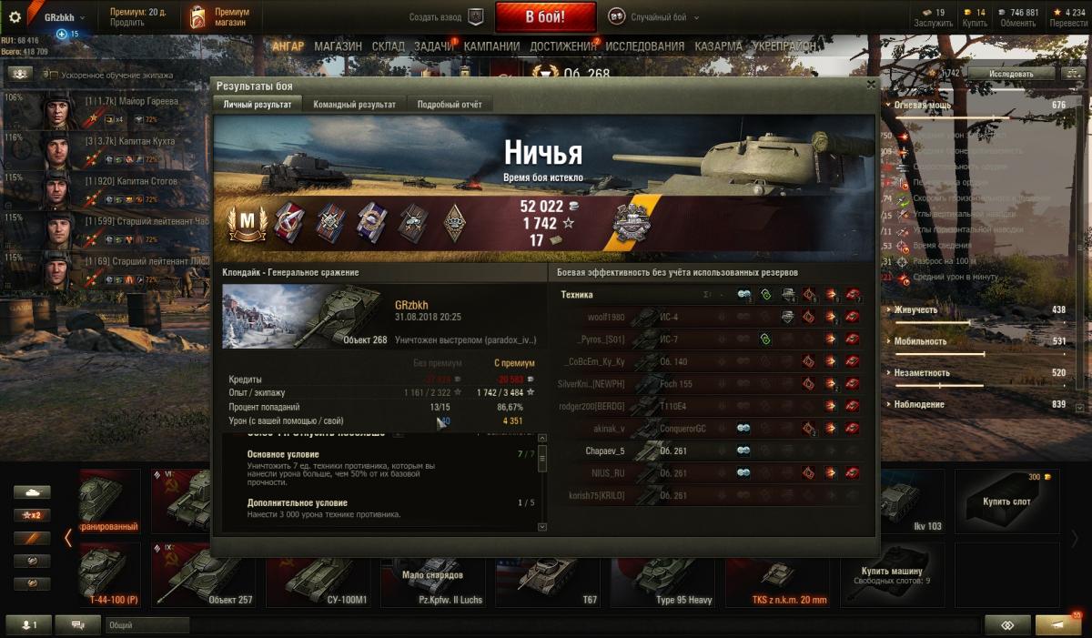 Итог - пришло время освободить хороший экипаж от непосильной ноши безбашенного калеки и одарить каким-нибудь читодид-7. Объект 268, rest in peace, amen.