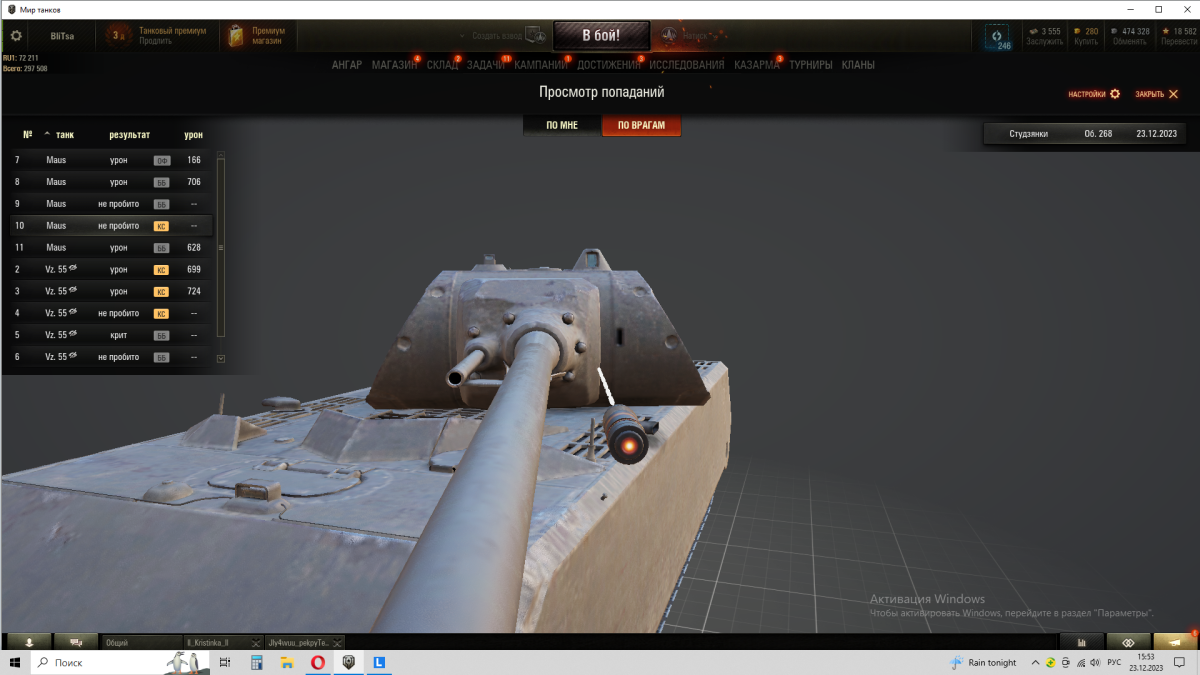 Во-вторых, повторюсь, 268 никогда не танковал 9-10 уровни. Чисто расчет на то, что оппоненту не повезет. Я как бы напоминаю, что до общей доступности голды (и какое-то время после) нормализация ББ снаряда была 10 градусов, а у ис4/т10/ст1/м103/110е5 пробитие ББ было 270. Там пробитие по факту было выше, чем у текущей голды ис-7.
