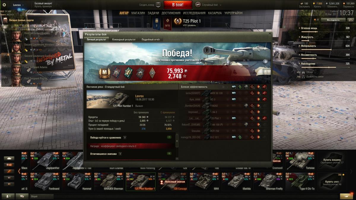 • Не смог выполнить ЛБЗ/докупить задачи и получить танк в ангар, жалею