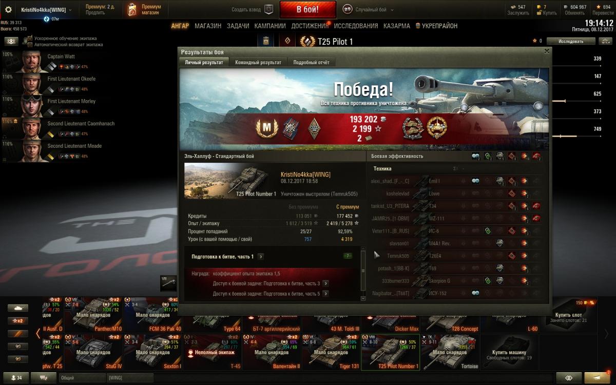 • Не смог выполнить ЛБЗ/докупить задачи и получить танк в ангар, жалею