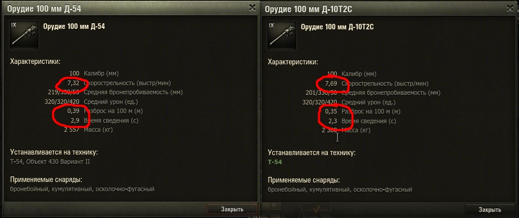 Посмотри внимательно на характеристики орудий у т54.
