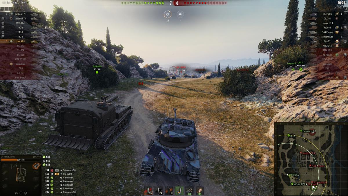 Блин, ну поздравления. Я сейчас подсел на свои стшные премы, надоело эту тупизну всю качать. Даже не то что надоело, а просто потерялся смысл, выкачать топ и не играть на нем, потому что не идет. Сел на тайпа 59, лорку, проджетто, центурион 5/1. Скажу так, по точности орудия центурион и проджетто однозначно в топе. Но на Центе игра вообще не идет (40% побед), на проджике более или менее. Тайп как-то без комментариев, но носишься по карте стреляешь, через два три раза попадаешь/не пробиваешь и хорошо если 1000 урона набил, в общем очень потный танк на урон. Но вот больше всего душа лежит к лоре, хоть там и 40% побед (как то сразу не задалось), хоть там из барабана со второй линии (не пробил, не попал, рикошет, есть пробитие) можно всего одну пульку засадить.  Тупо или не попал или не пробил. Но на лоре стабильно 1,5-2 барабана можно влить, что для меня очень даже норма. Да, отвратная стабилизация, отвратная точность, но очень уж хочется гонять на нем. В общем интересный танк, хочу все таки сломать его по проценту побед и по урону. Пофиг на всю эту статистику, которой и так нет.