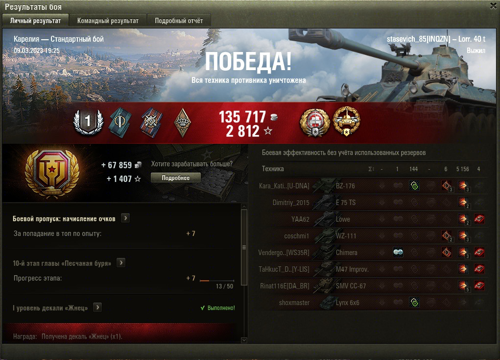 У меня играть на танке получалось как на качелях. Одна ошибка и я в ангаре с 0 дамага. Собрался и в следующей бою - топ по урону (и это с моими-то клешнями!). В целом результативность пока лучше, чем на цикличных СТ и покупкой я доволен.