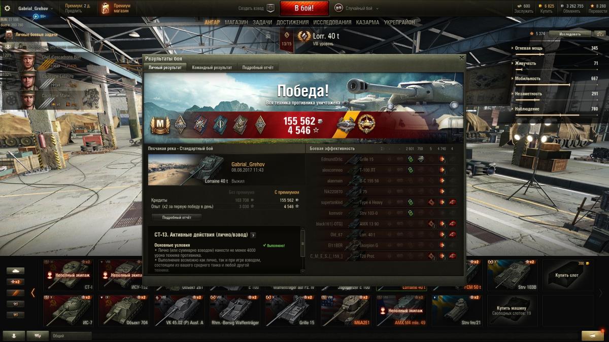 Вот к примеру только что сыгранный бой на "Мастера" на Песчаной Реке. http://wotreplays.ru/site/10338516#peschanaya_reka-gabrial_grehov-lorraine_40_t Сборка танка аналогична предложенной автором данной темы: оптика, стабилизатор, вентилятор, ББ, перки на стабилизацию и обзор, и доп паек. Если отнять награду за выполнение ЛБЗ (50000 кредитов), расходы на пополнение расходников, боекомплекта и ремонт машины БЕЗ ПА выйдет чуть больше 43000 кредитов.