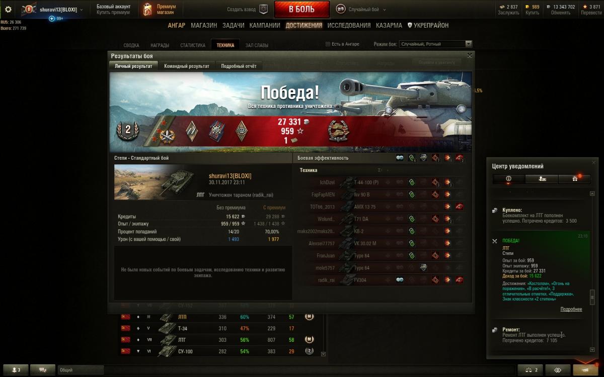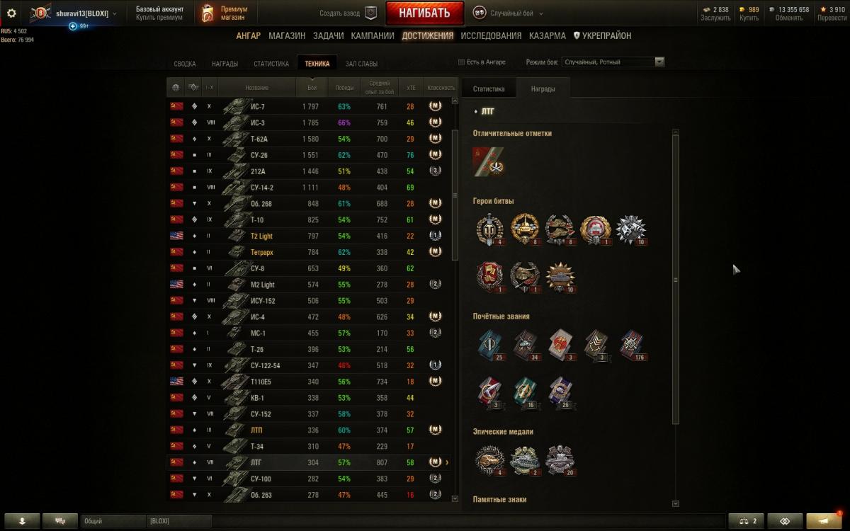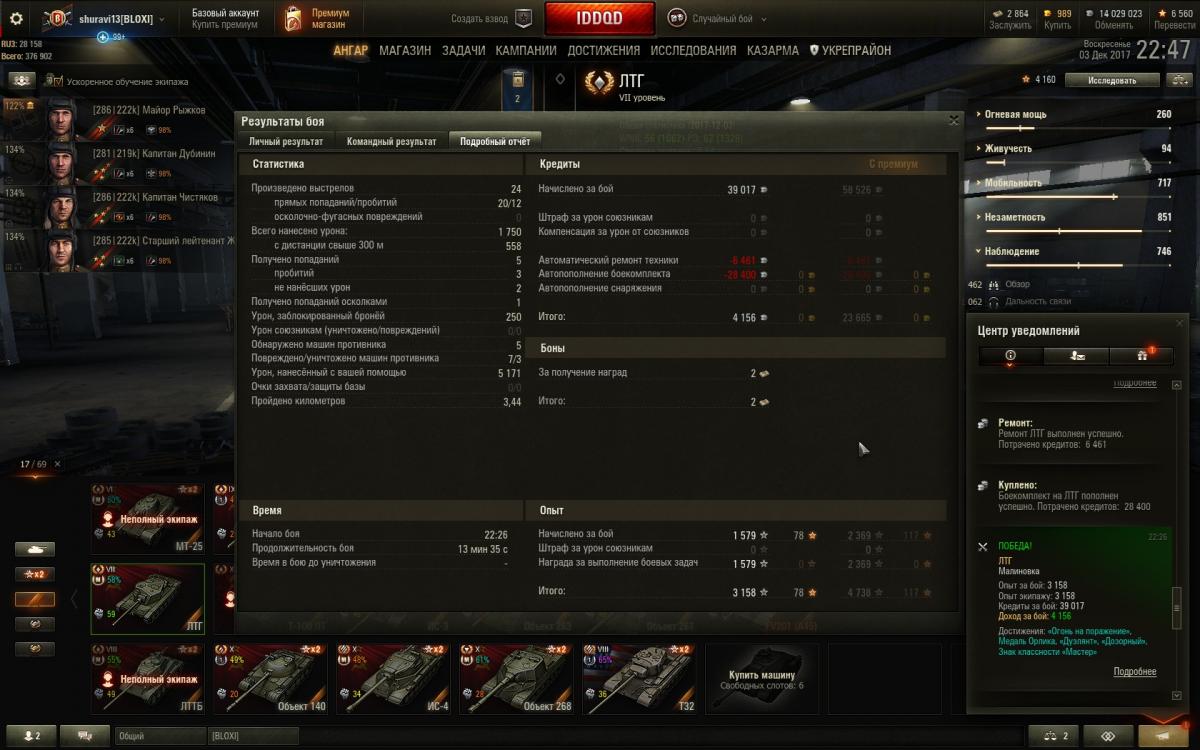 Однако очень требовательный танчик. Как на проходном не поиграть, без экипажа в 4 перка к отметкам не подступишься. Зато разница между средним экипажем с бомж набором  и ветеранами с пайком  здесь чувствуется как нигде.