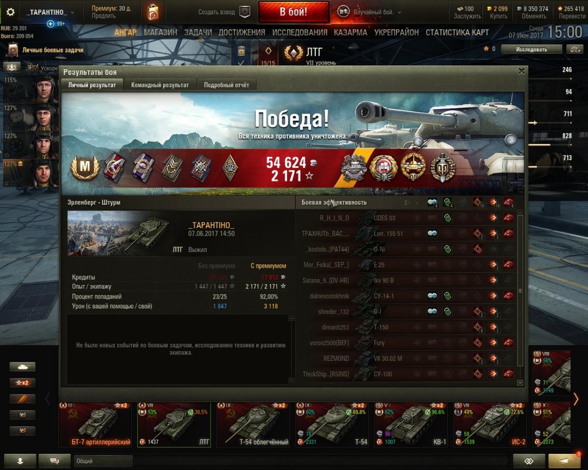 Тачанка понравилась, не ЛТТБ, конечно, тот пободрее и порикошетнее был, но с учетом того, в каких уровнях боёв ЛТГ играет, и играет он там очень часто - в них и на нём уж точно не скучно.