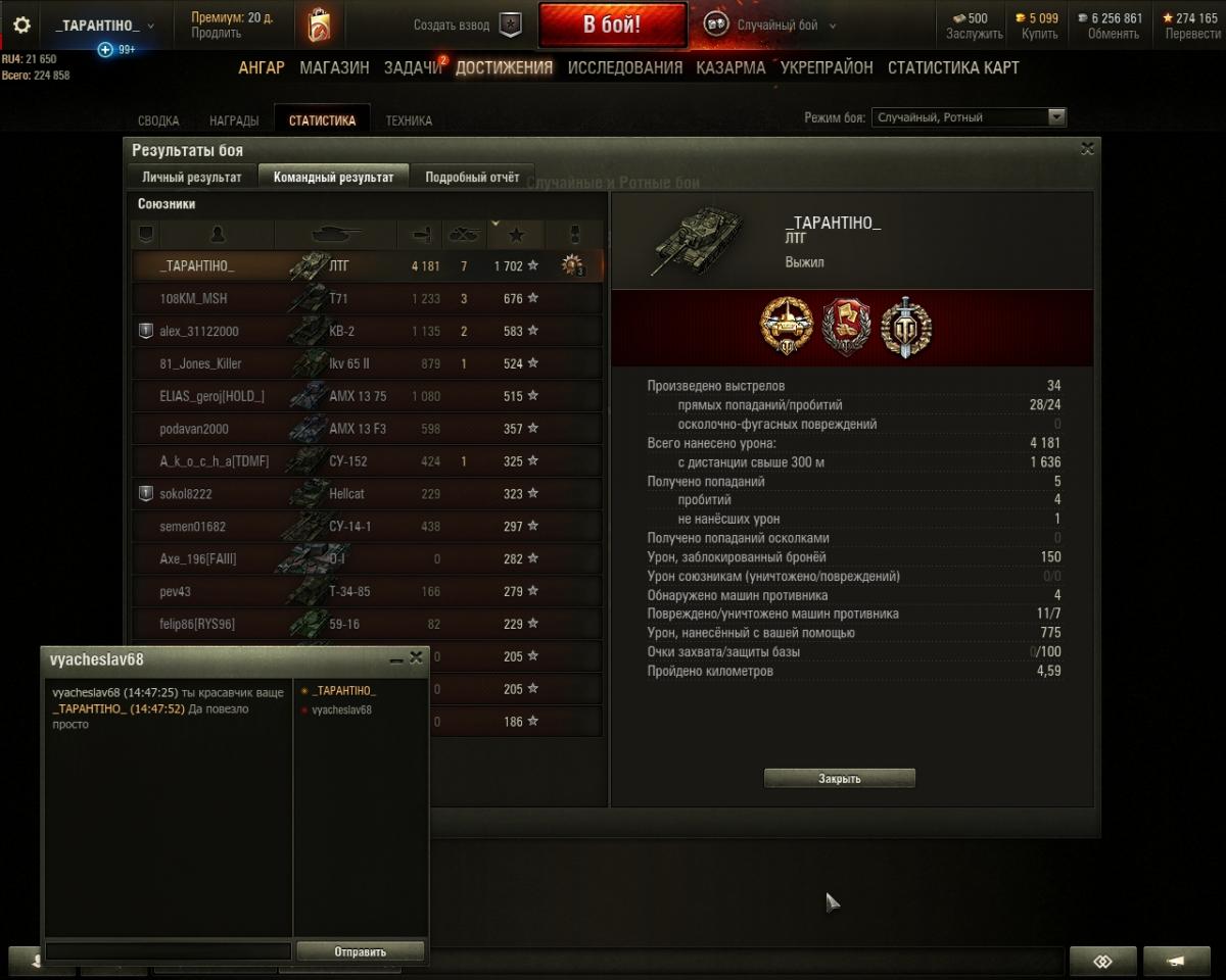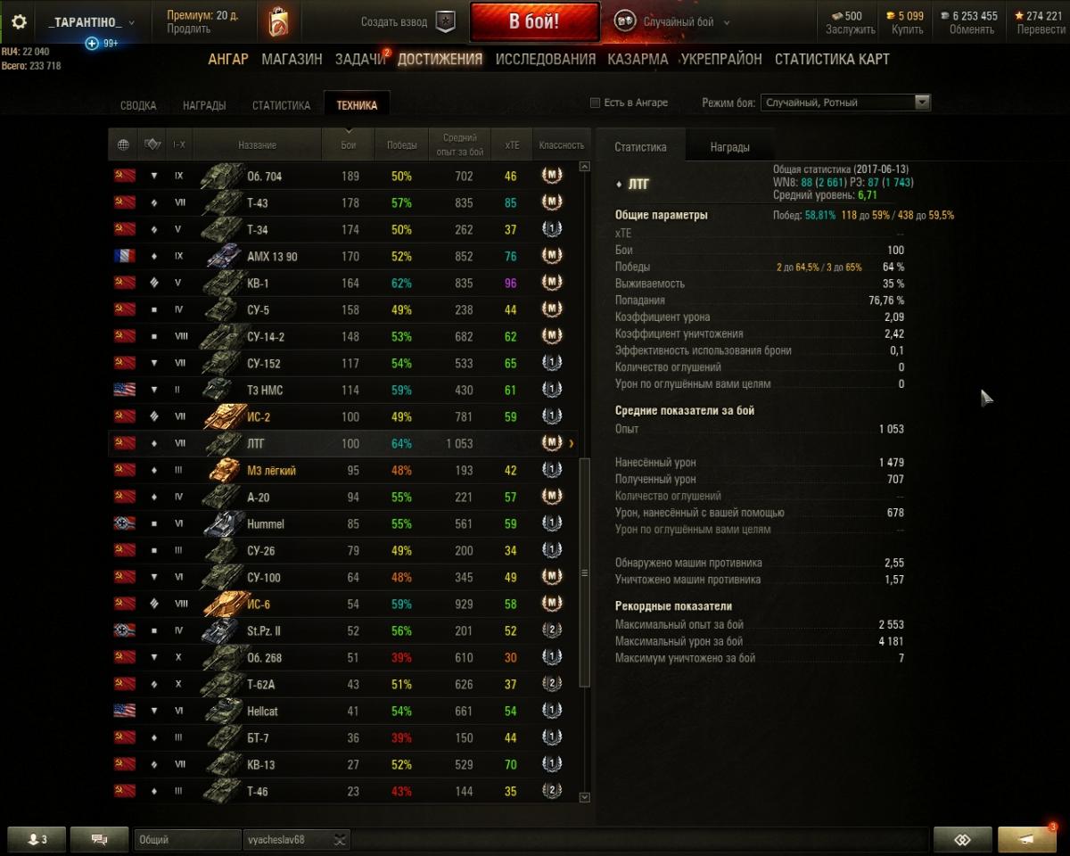 быть может и так. Но я думаю, что большинство сасистов дро... апают вн8 на Т71 или 13 57, вот у них отдача от скилла просто божественная... За лучшие сессии я держал около 1700-1800 среднего урона на лтг, за лучшие серии на 13 57 (йеее он у меня есть, оп-оп) урон был 2300+ :D