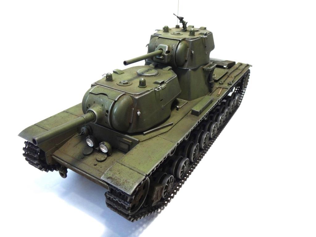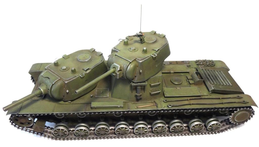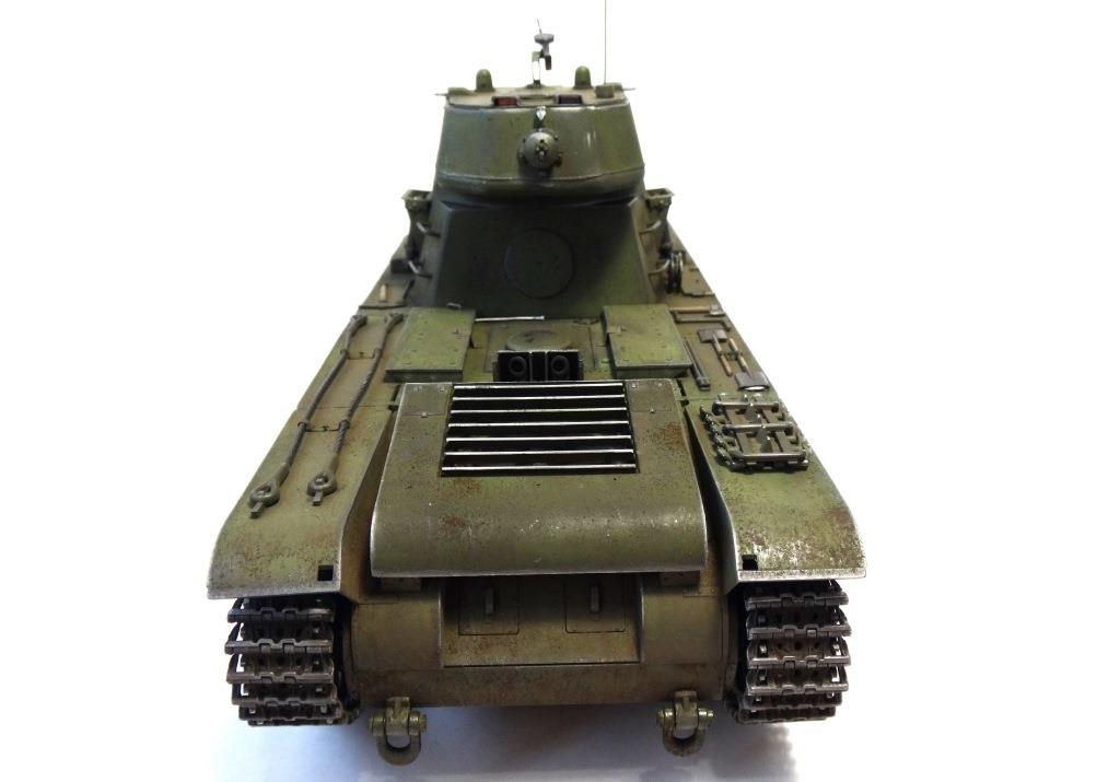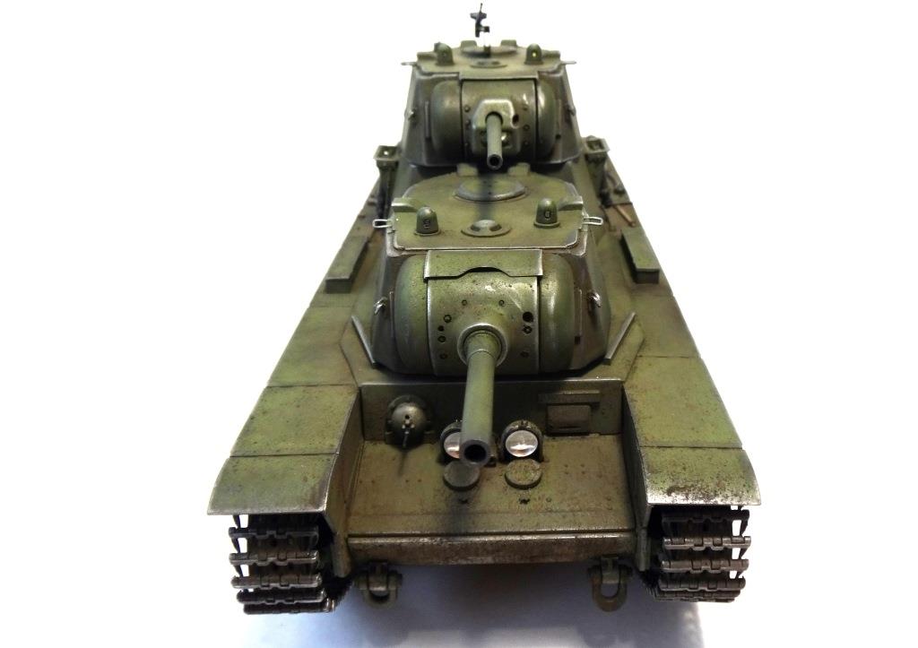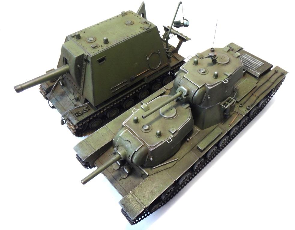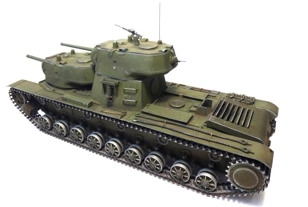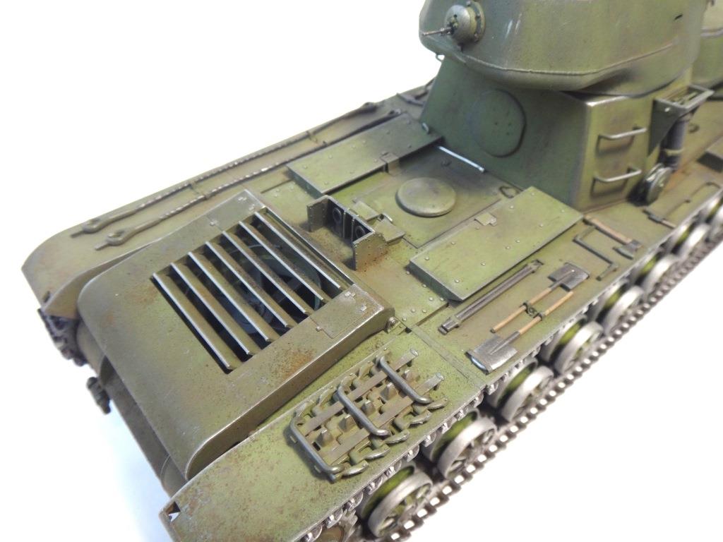 DW969 Опубликовано: 14 мая, 2017 Игроки 237 публикаций 19 380 боёв Жалоба Поделиться Опубликовано: 14 мая, 2017 (изменено) В рамках проводимого на форуме ARTMODEL конкурса альтернативной техники, собран возможный вариант модернизации танка Т-35, с использованием агрегатов и вооружения танков КВ с 76-мм пушкой и 122-мм гаубицей. Кроме пушечного вооружения танк имеет пять пулеметов (из них один зенитный). Бронирование усилено за счет установки экранов на бортах корпуса и передней проекции. Верхний броневой лист заменен полностью.Подвеска машины - торсионная, применяемая на танках КВ. Силовая установка так же от КВ. Однако менять систему охлаждения и отвода отработанных газов не стал. По этой причине внешних изменений по силовой установке на корпусе машины не видно. Трансмиссия без изменений.На сколько изменилась масса машины судить сложно. Конечно она выросла, но насколько можно только предполагать. На машине сняты боковые экраны и удалены все пять башен. Одновременно с этим для придания брони противоснарядного бронирования, установлены дополнительные листы с бортом и носовой части машины. Конечно скорости или проходимости лишний вес не добавит. Но этой машине особая скорость и не требуется.Основное вооружение выбрано с целью увеличения возможностей машины как по ведению огня по бронированным целям и пехоте, так и для подавления огневых точек, защитных сооружений и скопления техники и личного состава противника.Получившийся вариант модернизации назван Т-35БМ - большая модернизация.Такой вариант вполне себе мог быть. Собрана модель на основе Т-35 от "Звезды", части комплектов моделей танка КВ-1 от "Восточного экспресса". Остальное - самодел.Окрас и химия от Японского производителя.Спасибо за внимание! Удачного просмотра и анализа получившегося варианта танка Т-35. Изменено 14 мая, 2017 пользователем DmitriyDW 12 Ссылка на комментарий Поделиться на других сайтах Другие способы поделиться...