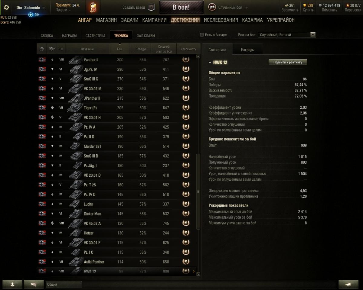 Сейчас катаю ХВК , 50% побед, одна отметка (72%) - буду поднимать потихоньку обе статы.
