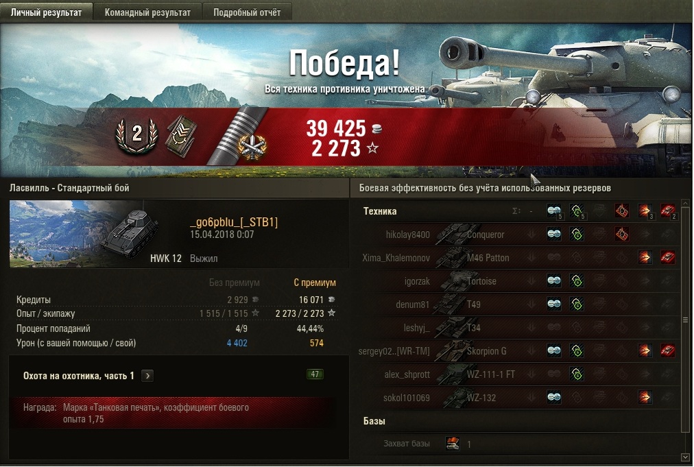 Странный танк в плане опыта. За полторы сотни боев набил 2 отметки на ствол, при этом лишь ОДИН раз получил 1 степень по опыту за бой (вторая степень часто), про мастера вообще не говорю. Т.е. по свету+дамагу вроде бы неплохо, а по опыту полный рак (средний урон 700, асист 1400, опыт 800), хотя по итогам боя регулярно первое место или или по крайней мере в топ-3.  Либо на нем дикие статюги играют, либо большинство играет не от света, а от дамага (что странно ибо ТТХ именно для света) либо не пойму что с ним не так.