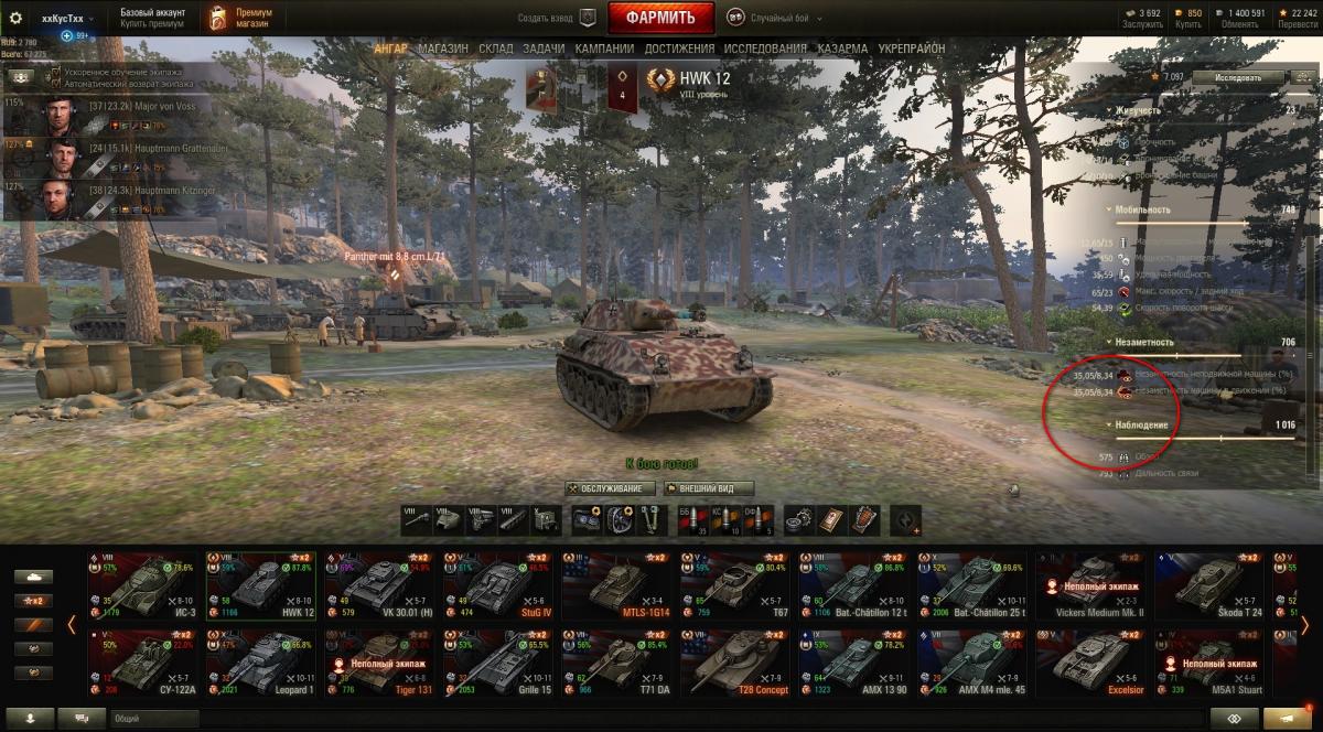 маскировка 98%,обзор 460м(по данным из ангара).