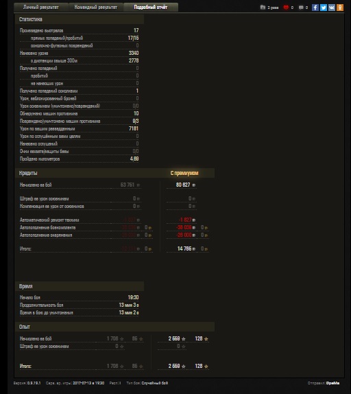 ОФФ. В ангаре покрывается пылью самый лучший по моей стате среди тяжиков КВ-3. Абсолютно нефановый, а просто везучий. Сам всегда удивляюсь.