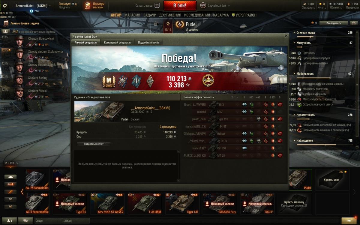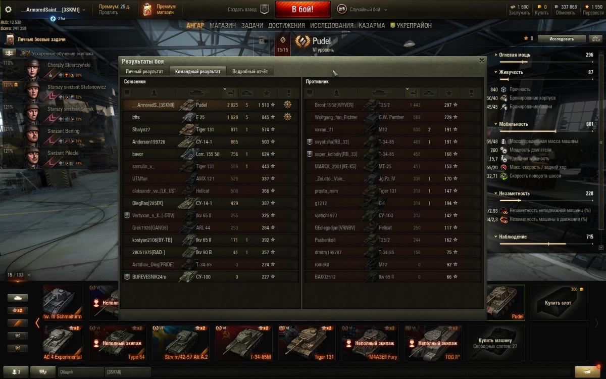 П.С. а что касается пуделька, то мне,как любителю изящных черт пантеры - танк просто нравится как минимум внешне,да и в бою довольно неплохие показатели получаются. В общем доволен + экипаж готов польский.