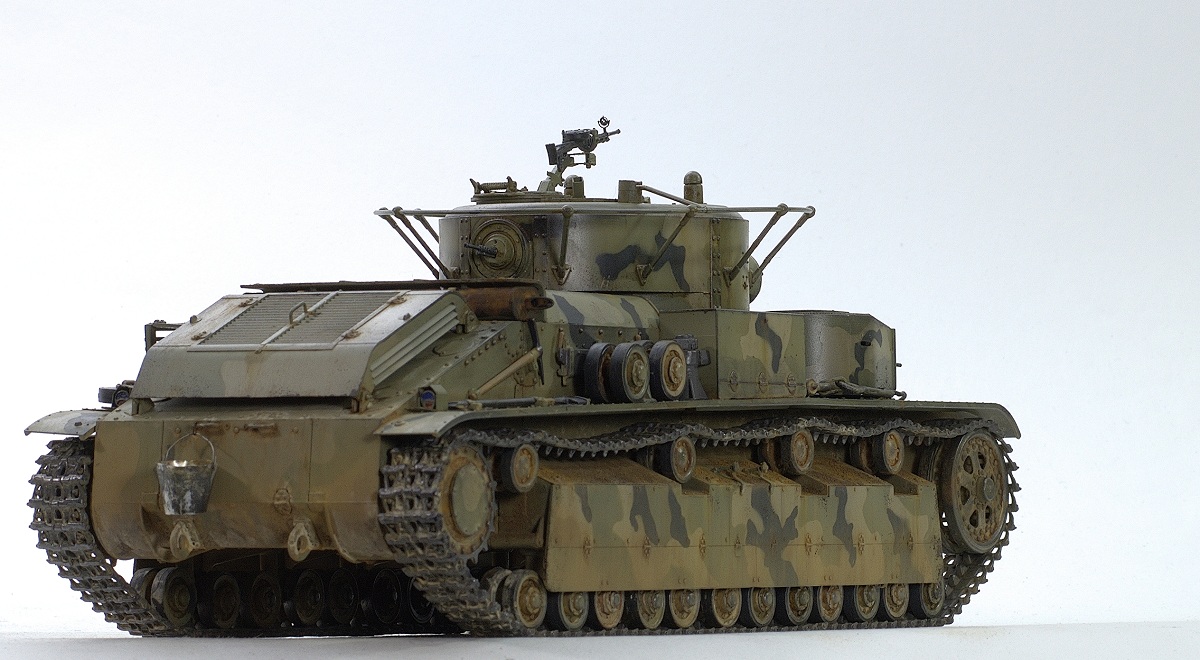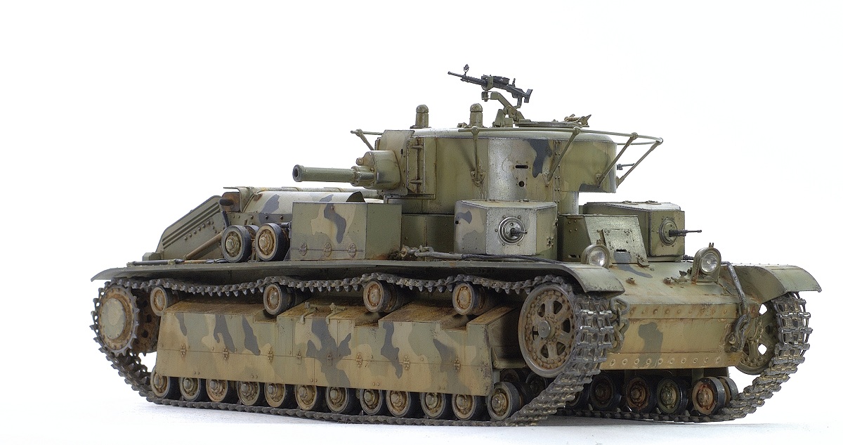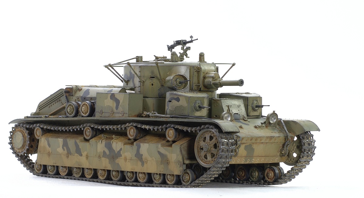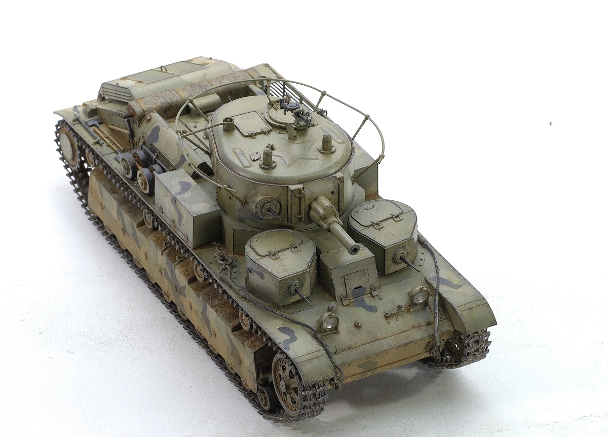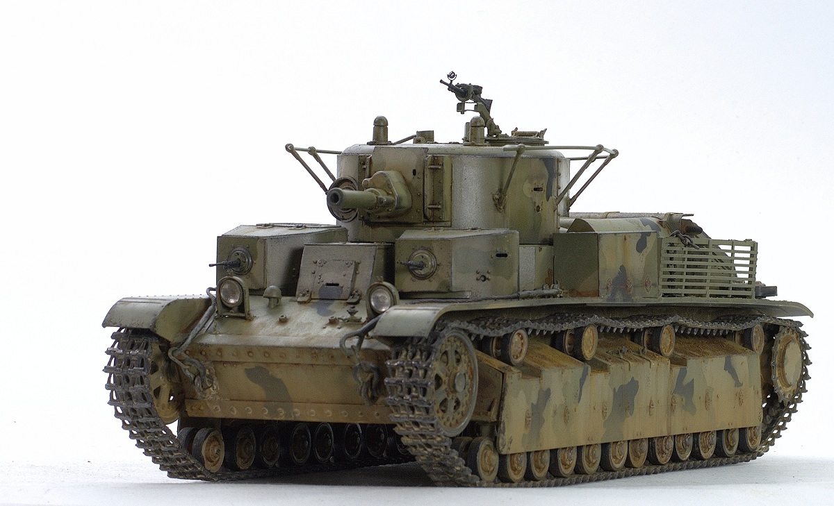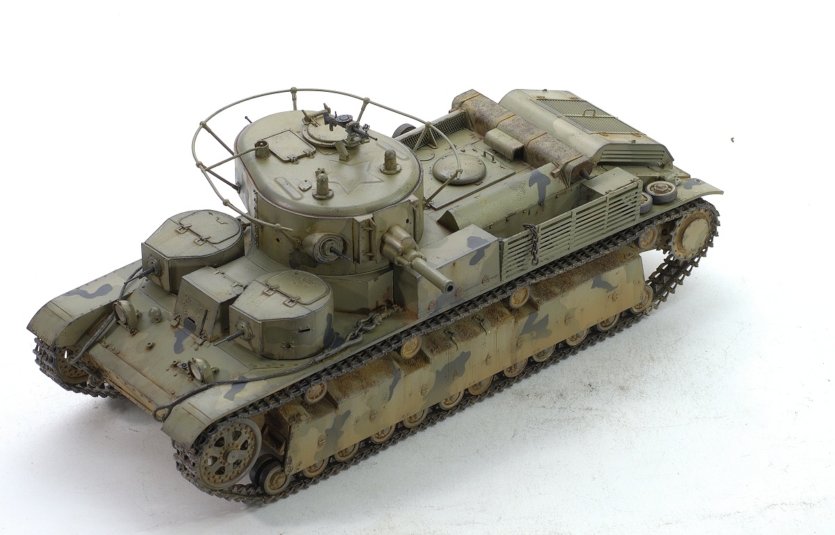 Serg106en Опубликовано: 30 июня, 2017 Игроки 1 186 публикаций 19 772 боя Поделиться Опубликовано: 30 июня, 2017 Привет форумчанам! В продолжении линейки советско-российской техники заимел в коллекцию Т-28 от Хобии Босса. Очень неплохой набор - два листа травла, медный трос, хорошего качества наборные траки, детали на два варианта модификаций. Я построил модификацию с пушкой Л-10, более брутально выглядит. В инете нашёл прототип с такой пушкой и соответствующим камо - получилось трёхцветное. Решил ушатать танчик - захотелось увидеть в нём явные "следы эксплуатации"... хотя многочисленных сколов до металла, не стал делать, мода уходит))... Снова поэкспериментировал с пигментами. 25 Ссылка на комментарий Поделиться на других сайтах Другие способы поделиться...