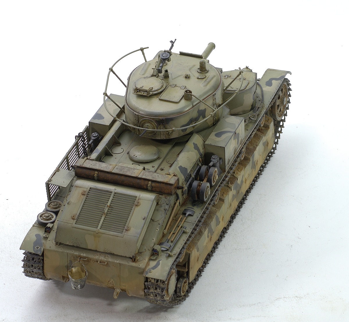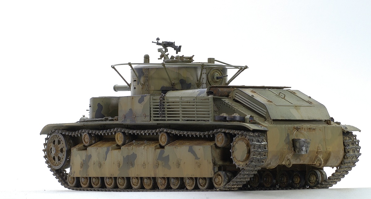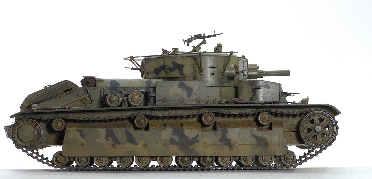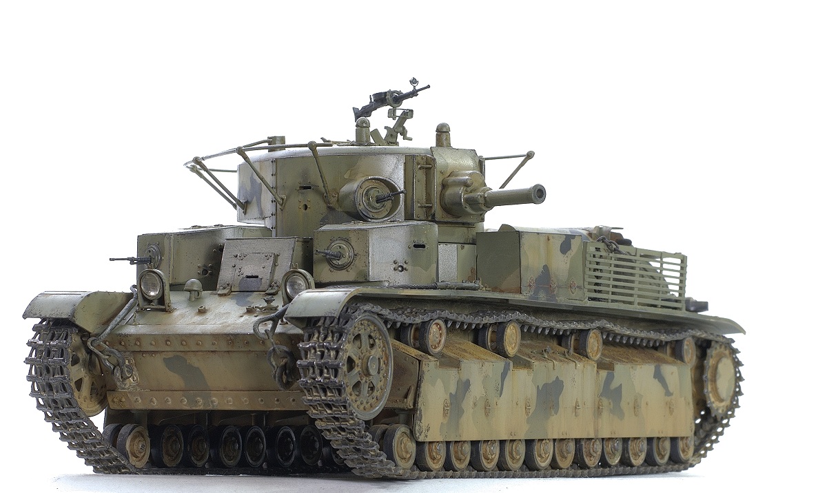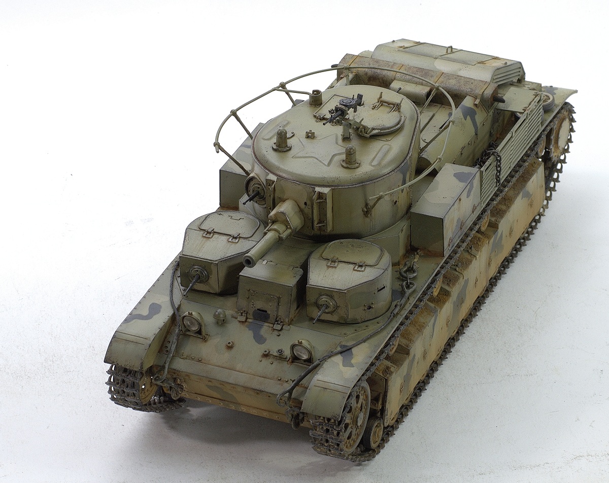 Serg106en Опубликовано: 30 июня, 2017 Игроки 1 186 публикаций 19 772 боя Поделиться Опубликовано: 30 июня, 2017 Привет форумчанам! В продолжении линейки советско-российской техники заимел в коллекцию Т-28 от Хобии Босса. Очень неплохой набор - два листа травла, медный трос, хорошего качества наборные траки, детали на два варианта модификаций. Я построил модификацию с пушкой Л-10, более брутально выглядит. В инете нашёл прототип с такой пушкой и соответствующим камо - получилось трёхцветное. Решил ушатать танчик - захотелось увидеть в нём явные "следы эксплуатации"... хотя многочисленных сколов до металла, не стал делать, мода уходит))... Снова поэкспериментировал с пигментами. 25 Ссылка на комментарий Поделиться на других сайтах Другие способы поделиться...