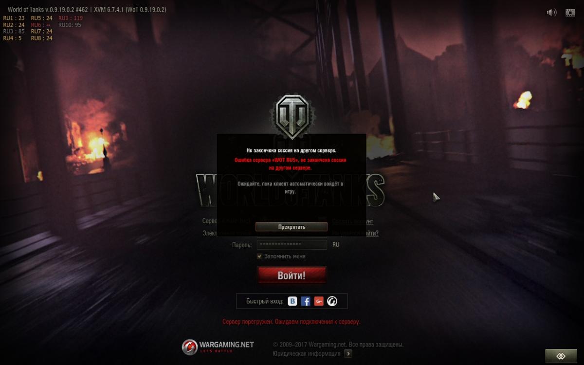 Cratega Опубликовано: 10 июля, 2017 Игроки 35 публикаций 55 103 боя Поделиться Опубликовано: 10 июля, 2017 ру 4 помер, на другой не пускает- сессия зависла 2 Ссылка на комментарий Поделиться на других сайтах Другие способы поделиться...