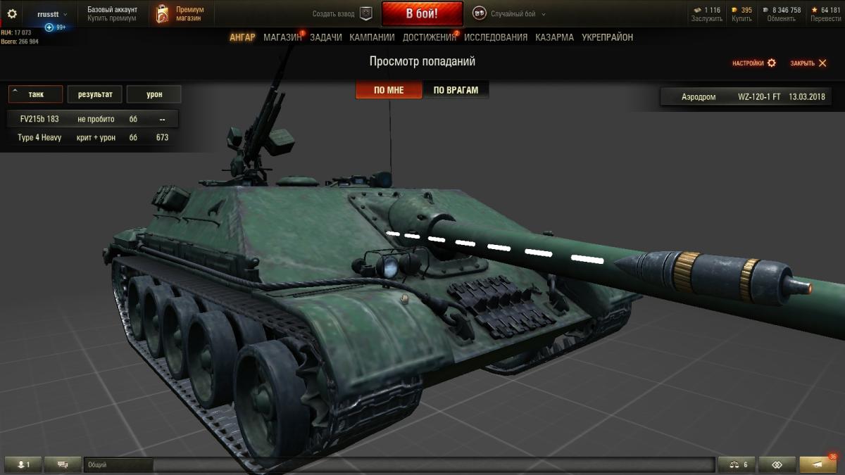 щас от FV215b 183 снаряд с пробитием 310мм попал мне в суперпрочный винтик :)