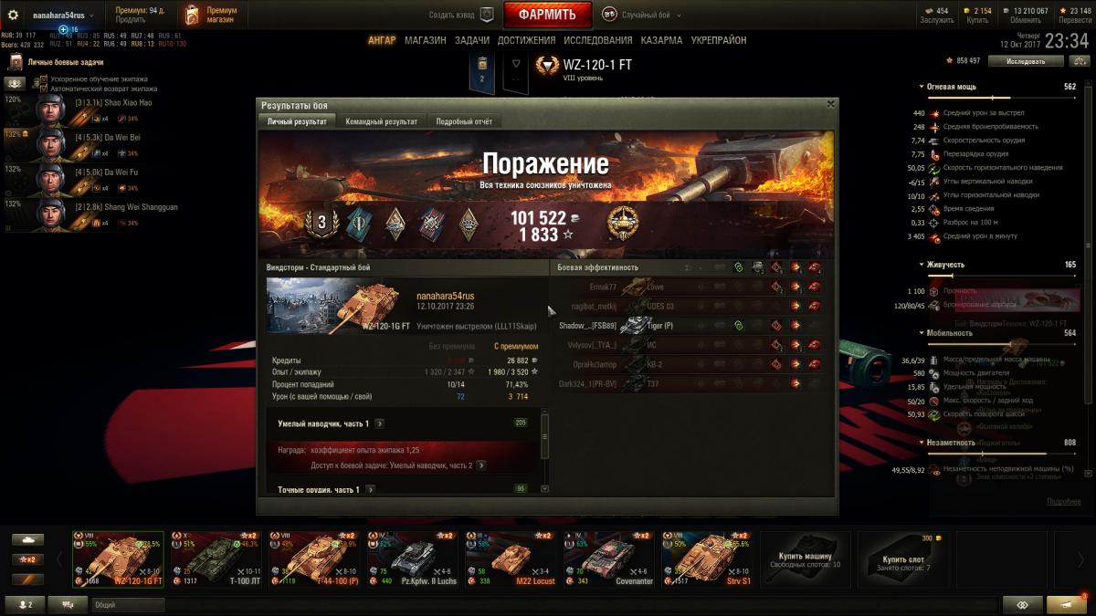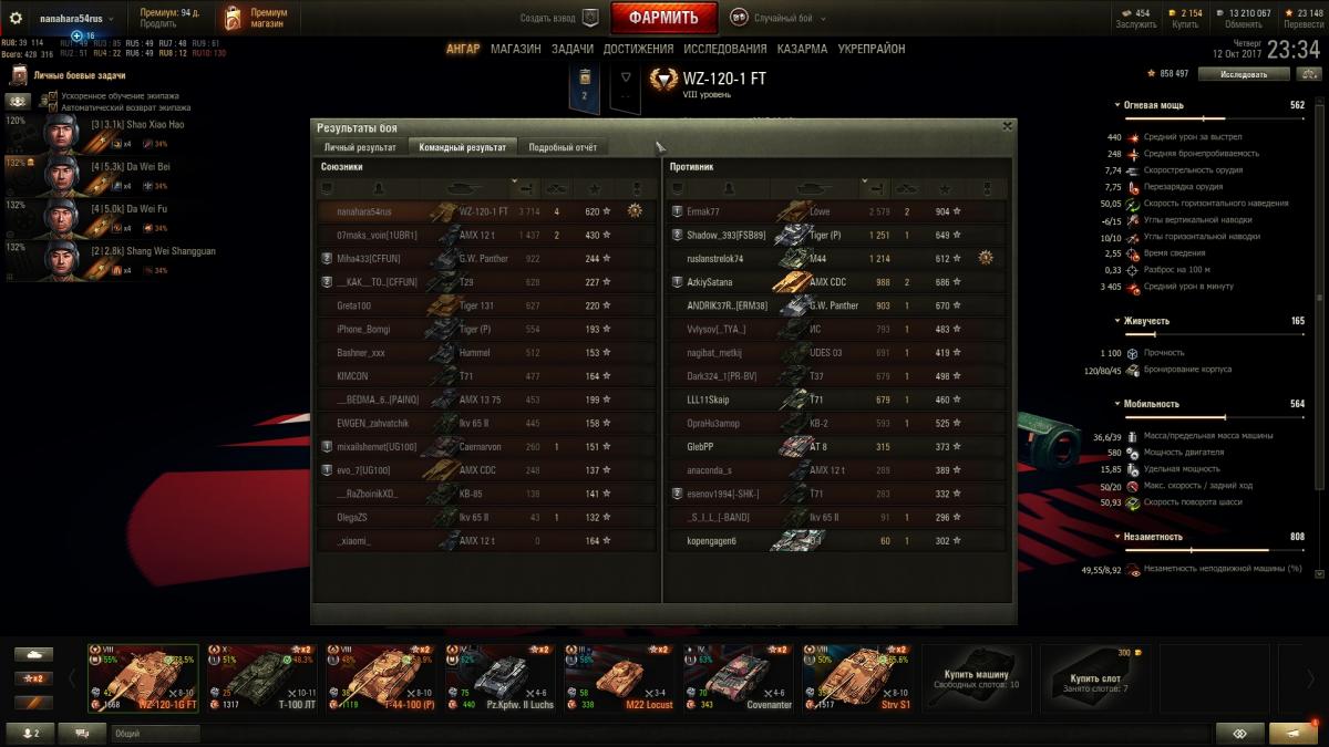Здравствуйте. Может я не в тему! но не где не могу найти ответ!!! WZ-120-1G FT обзор 506 с рогами, улучшенный рацион,100% экипаж, 100% боевое братство, 100% маскировка + маскировочная сеть!
