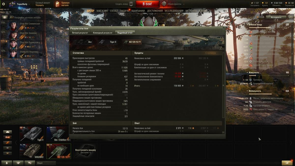 Единственное что огорчает в нем, так это оооооочень долгое сведение и точность. То есть танк с хорошей альфой но косой и долго сводится... Хотя бы сведение апнули, уже было бы проше. С расстояния 300 метров в лобовую проекцию самого WZ120 стрелял, так вот из 4 попал только 1... Это часто огорчает...
