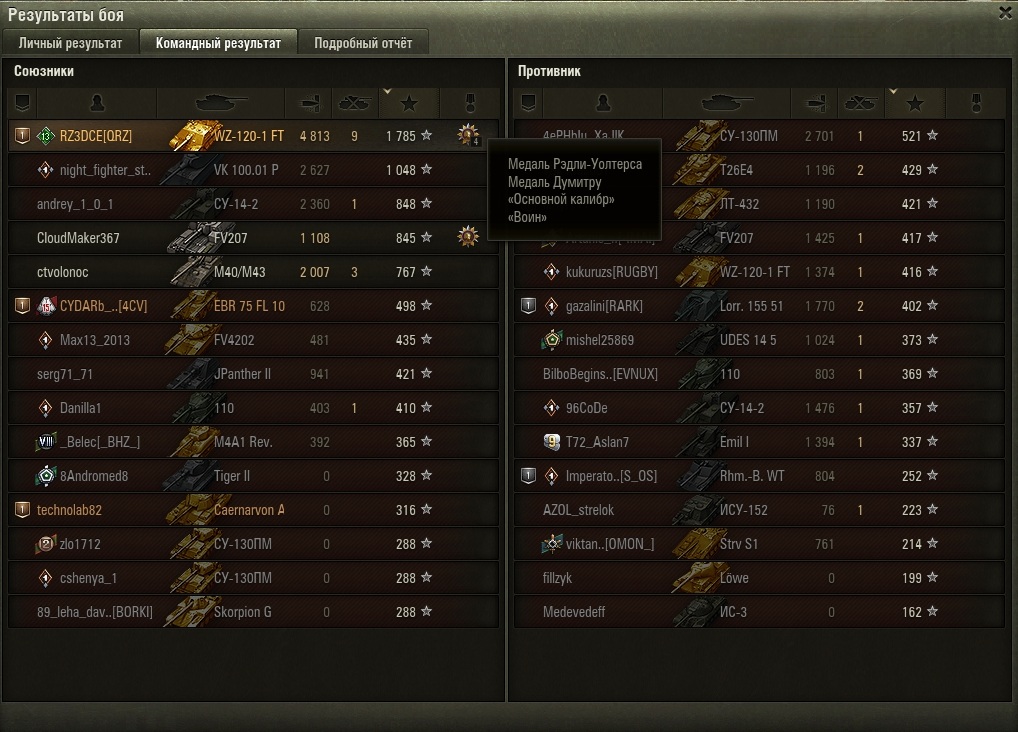 П.П.С. Не обратил пристальное внимание на результаты боя... Ну понятно, там и там 2 имбы в топе по урону, ВЗ и СУ-130, НО!... В топ-5 и там, и там по 3 арты... "Не влияет на бой", проверяй... :trollface: