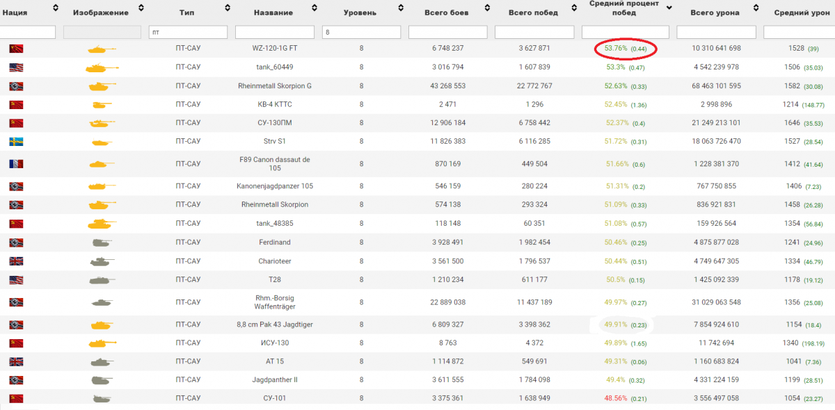 ты ты... в опы месяца не попал;) а сколько у меня боев на нем за три месяца 50 боев то есть? если топ выбирается из расхода исключительно 50 боев и по вашему предложению исключительно урону то к чему этот топ кому то? можно жухаться всю игру играть в пиксел но к чему это ну буду я больше всех в команде вливать цифр итог будет в большинстве случая проигрыш а у меня больше чуть больше опыта 100-200 и на тыс-две больше урона!? а оно мне надо какой стимул я что кушать будут эти циферки или на работе кому расскажу что я в топ 50 в пикселях?) такое себе...я больше скажу я и не старался туда мне не с кем разделить эту славу а когда поиграешь с xvm и почитаешь ники алексов становится не по себе приравниваться и уж тем более брать пример с алексиусов, а так рандом за крайние два года насмотрелся стримеров научились.