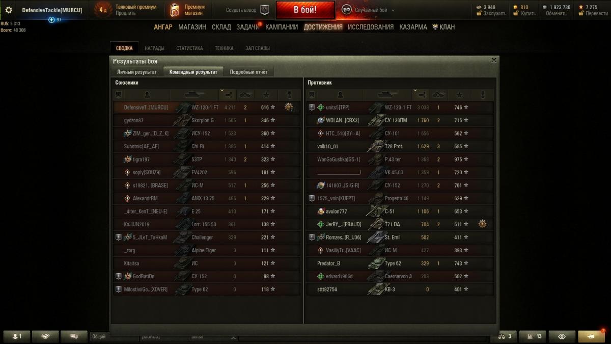 Второе. 268/4 - чисто лобовая тема, как Е3, Торт, Т95 и прочее. К чему это сравнение с машиной из разряда 122-44, только с чуть лучшей бронёй? Не должен ВЗ постоянно воевать в лоб. У тебя не будет хороших показателей при этом. Будут бои с парой выстрелов и ангаром, тебя тупо разберут...