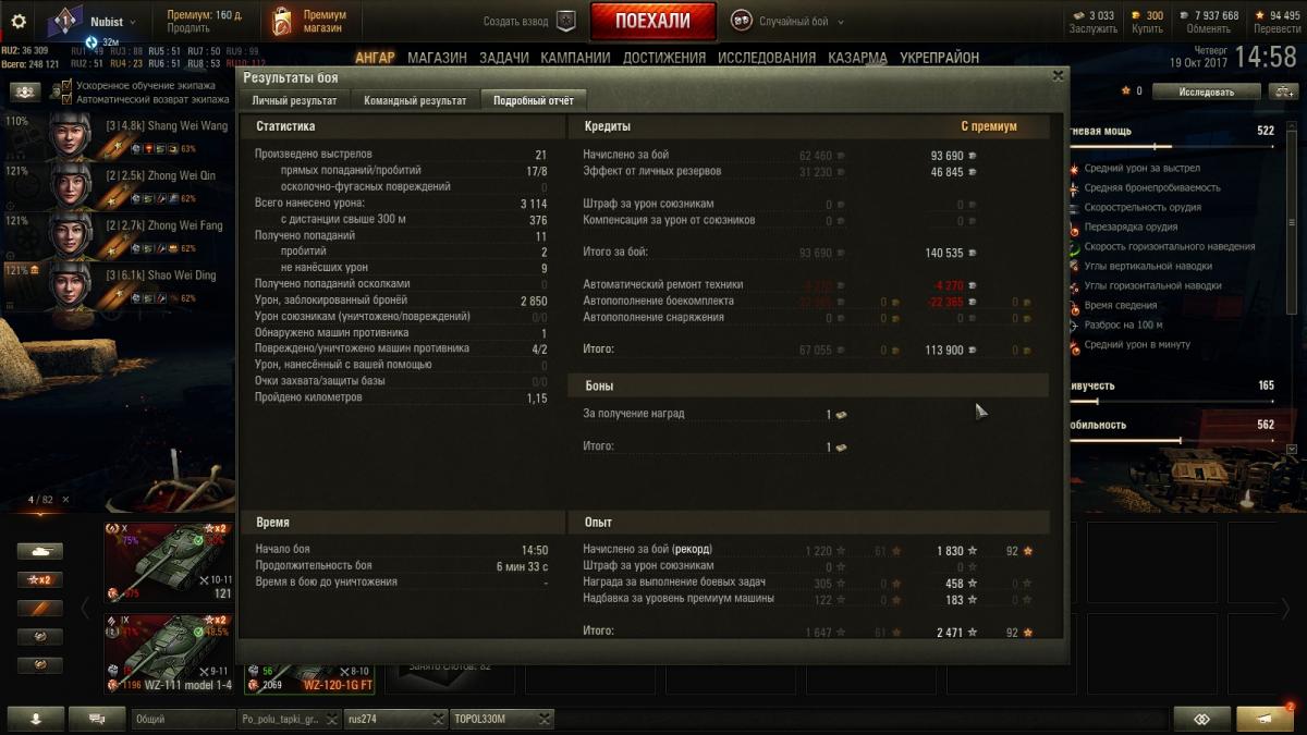 Вчера вот поменял свой AMX CDC (пока не получается на нём играть) на этот WZ-120-1G FT, экипажа китайского у меня не было, обучил на 100% и в бой...