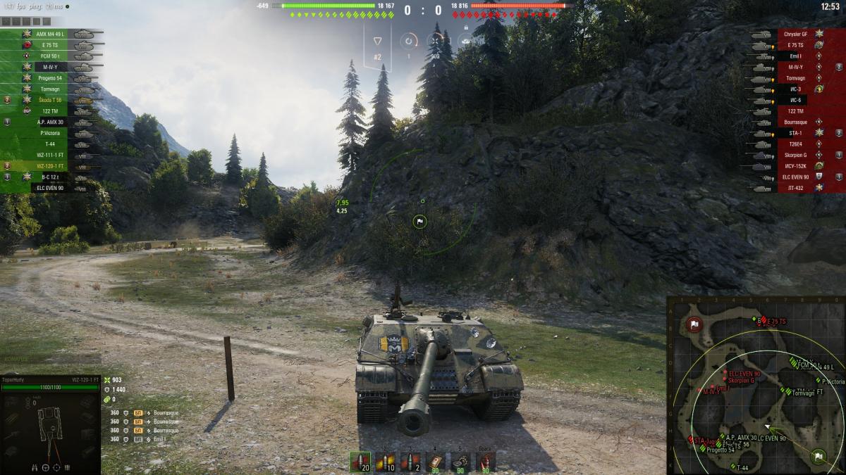 Поиграл сдэцл и думал сразу зайдёт))), вазик сложен в освоении, ставь прицел+сведение+оптику/вент, сводись заранее туда где шот можно дать, при танковании при стрельбе в тебя ромбуй после выстрела врага - помогает танчить 8ки. В целом норм пт