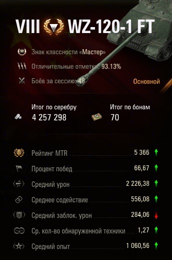 У меня , соответственно -1.35 и 1.38, число побед- 51% (2607 игр на ней). Ау-у, Леста, твои манипуляции задолбали уже. Убери, пожалуйста,