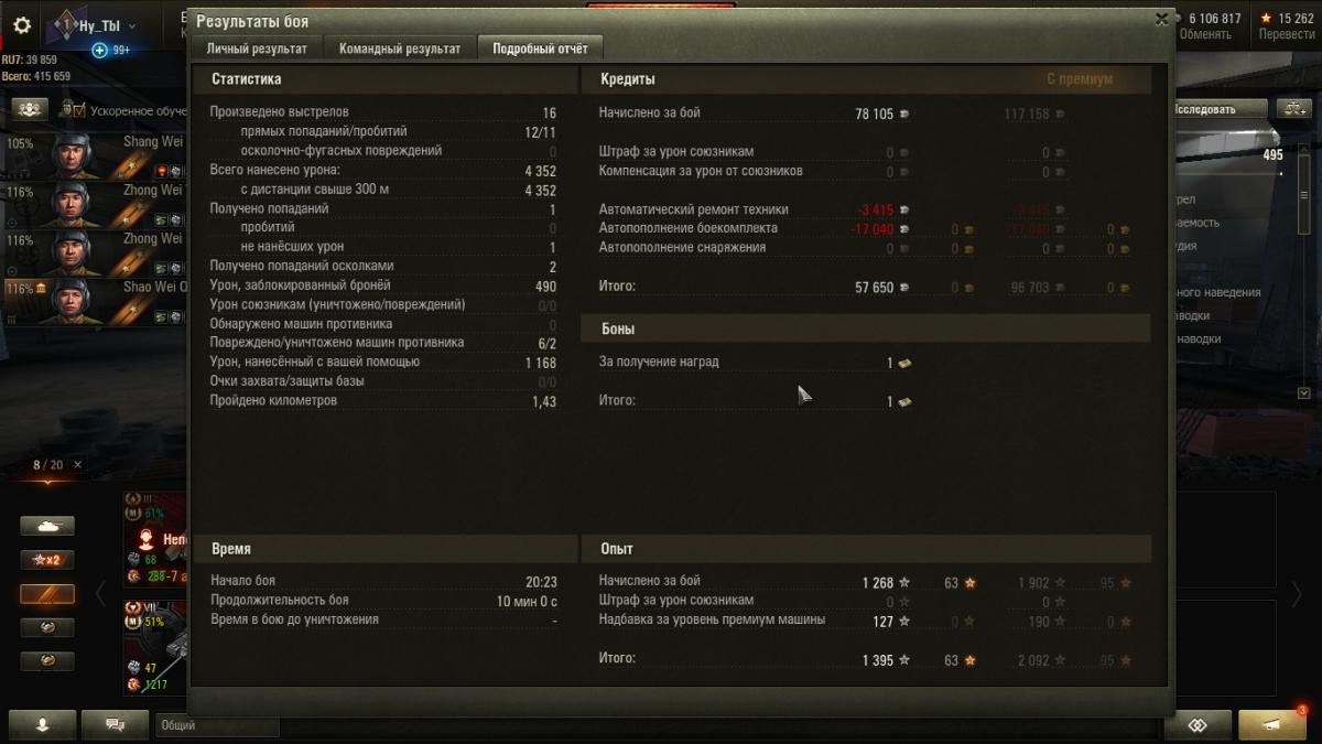 Раз уж много играю и хочу много играть на этой пт.Могу записать  уровень боев в течении 100 боев подряд.