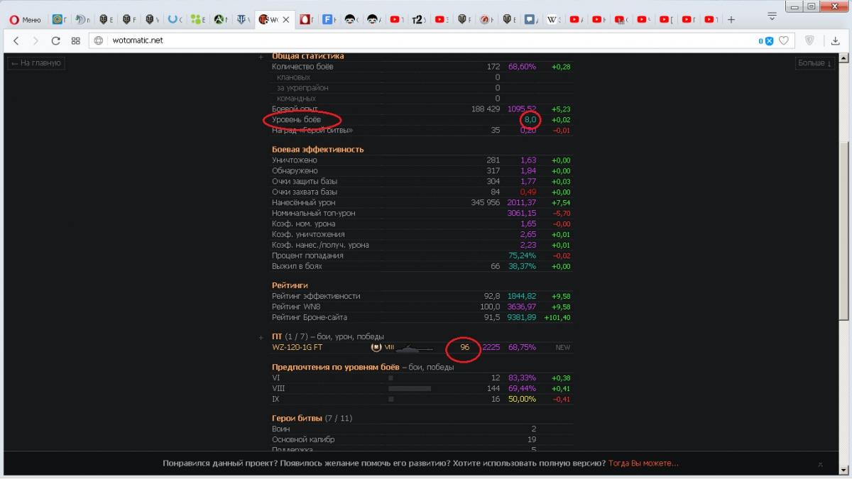 Раз уж много играю и хочу много играть на этой пт.Могу записать уровень боев в течении 100 боев подряд.