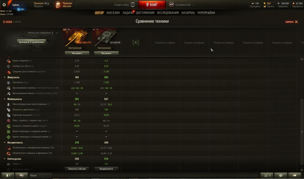 Пушка Су-122-54 значительно комфортнее по всем показателям.