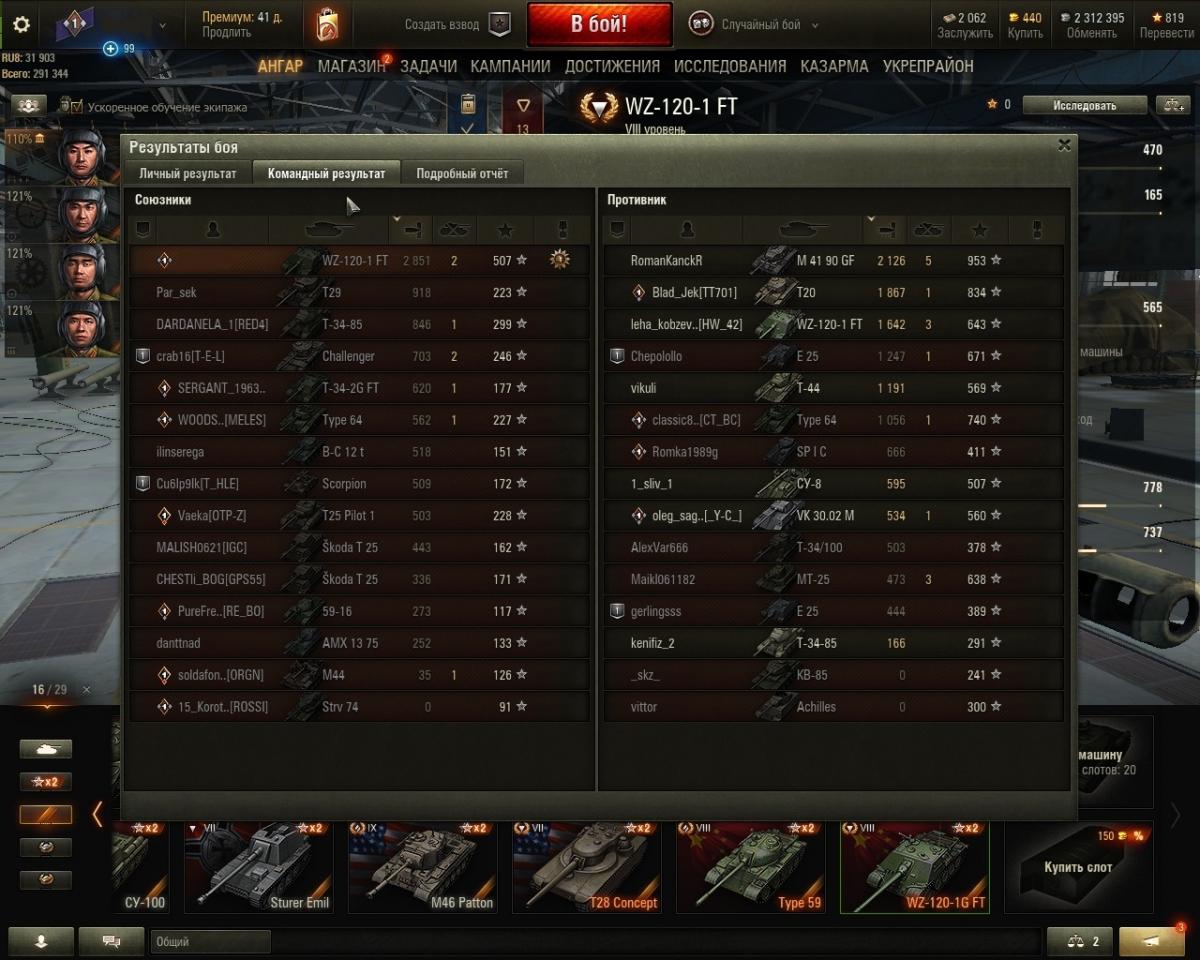 У тебя на штатной ПТ 8 уровня урон 1100+ . У меня на WZ-120-1G урон 2000+ . Как то не убедительны твои слова вот совсем :sceptic: