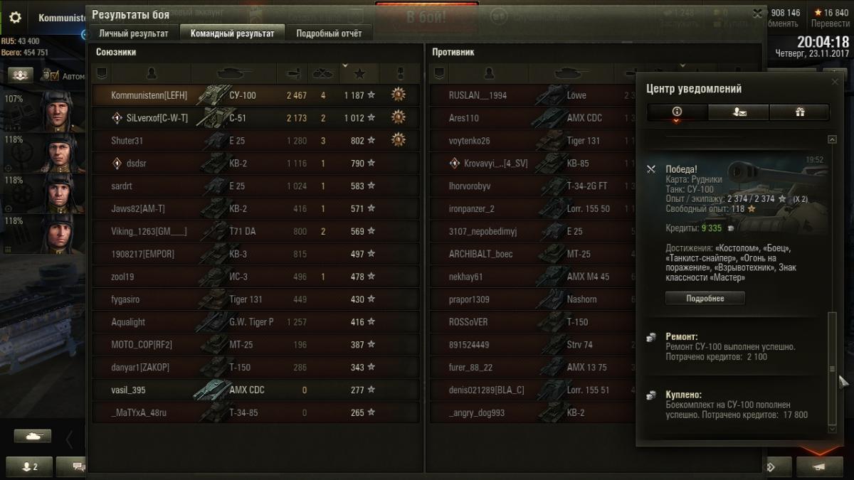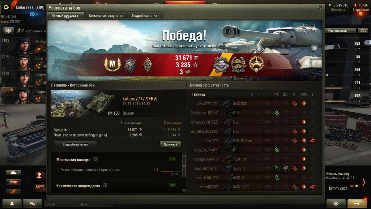 Купил по случаю скидок 30%, чтобы на всякий случай выкачать су100м1 (в связи со скорой переделкой ветки), и попутно взял мастера (вроде первого), хотя в начале боя уже казалось что слив - гору отдали, на лт и топах ***, амх сдс вообще бот, весь бой просидел фуловым прячась за артой, а профиль говорит сам за себя http://cdn-frm-eu.wargaming.net/wot/ru/uploads/monthly_11_2017/post-1929883-0-00587900-1511457800_thumb.jpg:facepalm: