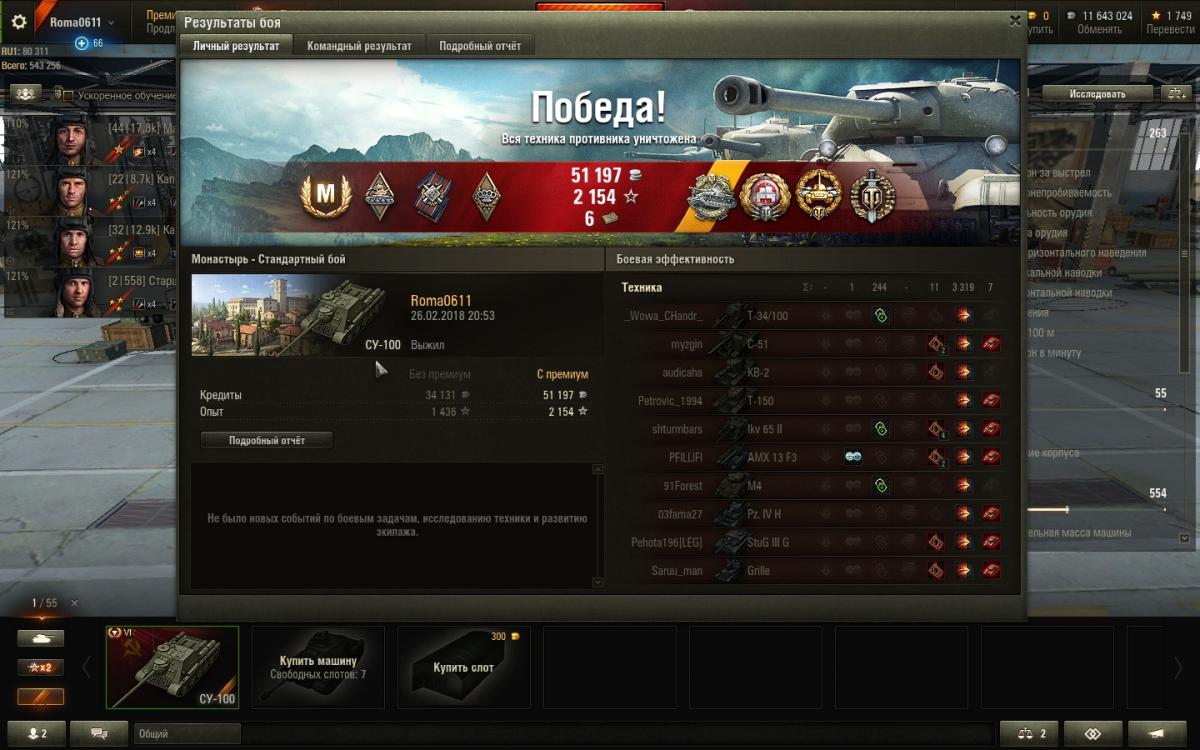 Да , название шумноватое , но это для ...аппетита :D   http://wotreplays.ru/site/11024608#monastyr-roma0611-su-100