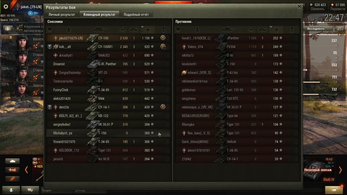 Весьма достойно. Но скажу по секрету, няшка СУ-100 и на аллее не потеряется. Методом "от куста 15м" тоже может огрызаться так, что мама-не-горюй.