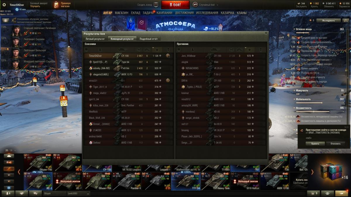А у него я смотрю средуха на СУ-100 чуть больше 900 и процент побед на ней чуть больше 57) Очень близко к тем цифрам, что ты написал)