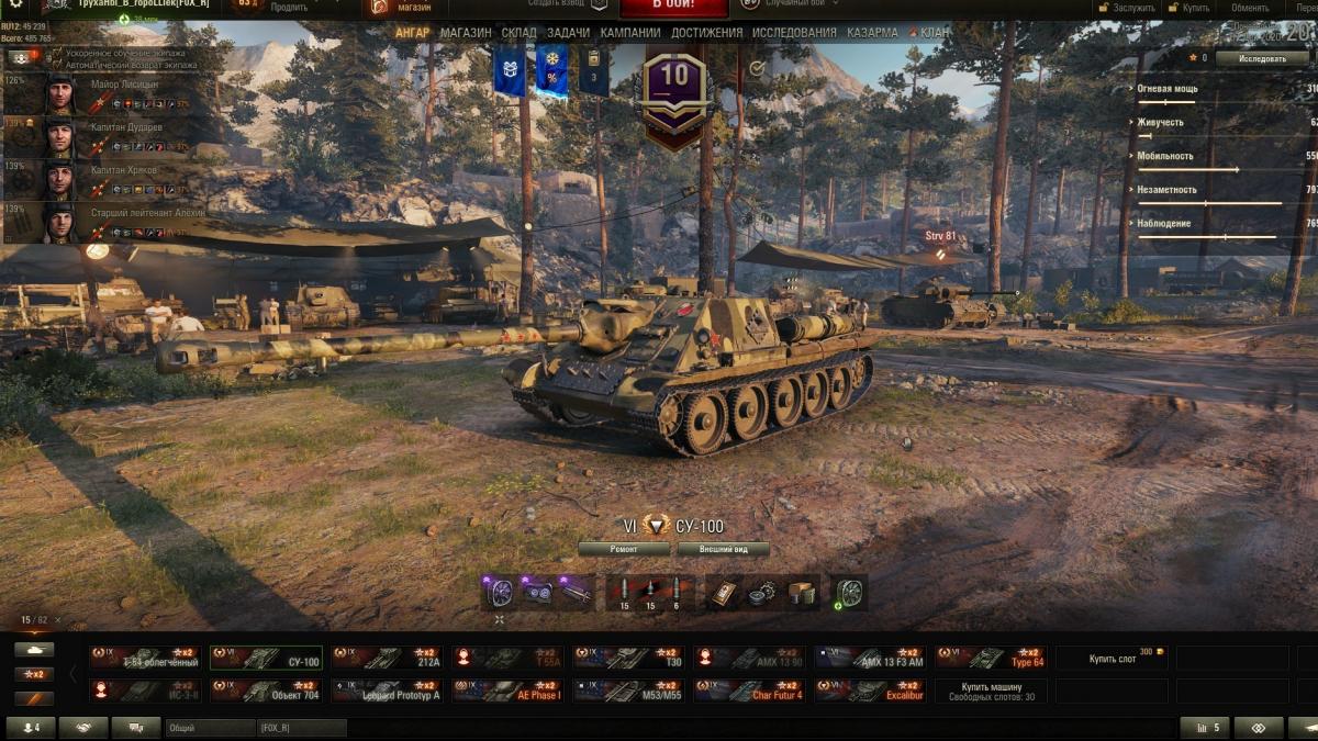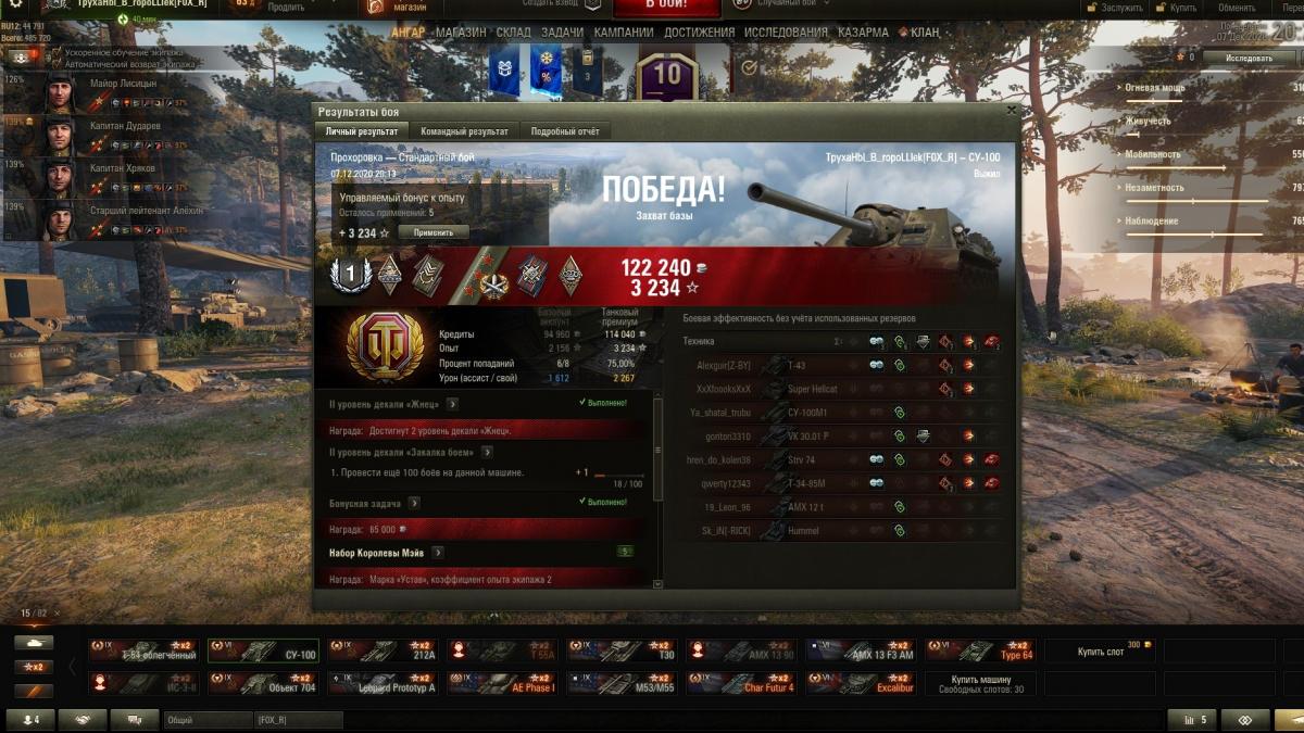 Ну... мне вообще СУ-100 не очень, честно... Не совсем моё... Я не понимаю, как она может тащить бои, если она не в абсолютном топе... То есть, как кустовик довольно мощный, но современный рандом требует ещё неких качеств, которых у неё, пожалуй, нет. Таких как стаб/поворот на месте/броня (нужное подчеркнуть, желательно - всё вместе, или хотя бы 2 аспекта, как у Стамески).