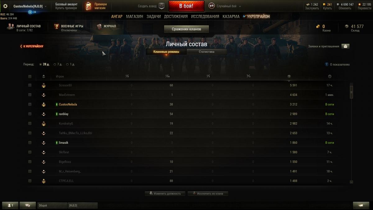 Разработчики Excelion Опубликовано: 11 сентября, 2017 Разработчики 8 451 публикация 29 184 боя Разработчики Жалоба Поделиться Опубликовано: 11 сентября, 2017 11 Сен 2017 - 17:13 пользователь electrode3000 сказал:Смотрите, вы новость недавно добавили, на Дальнем Востоке уже ночь , следовательно день потерян! Почему так мало времени скидки? Всего получается 6 дней! Я считаю об этом надо хоть заранее говорить!!!Анонс скидки был ещё 23 августа, новость.Выдержка из новости С 11 по 17 сентября в Укрепрайоне вас ждут скидки на постройку и прокачку зданий 1–6-го уровней. Мы решили анонсировать скидки заранее: за это время кланы смогут подготовиться и накопить необходимое количество промресурса. Так, снижение стоимости постройки позволит начинающим кланам быстрее прокачать Укрепрайон до уровня с резервами, дающими ощутимый бонус. 11 сен 2017 - 17:39 пользователь __toxaTuZ__ сказал:такой вопрос там будет показано допустим кто с твоего клана участвовал в бою?В журнале укрепрайона нет. Данную информацию можно найти во вкладке "Личный состав" -> "Статистика". • Что такое "нашивка" и где она обитает? • Старые версии клиента игры «Мир танков» • Список измененной техники с Обновления 1.22 • Форумные викторины и задания Ссылка на комментарий Поделиться на других сайтах Другие способы поделиться...