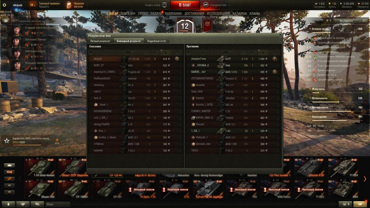 Было такое ведро , поменял на 7-го скорпа . Тоже не фонтан , тяжело выцеливать 9-ок , но Су122-44 вспоминаю с ужасом .