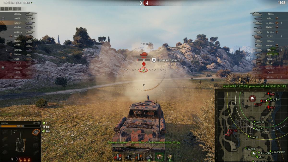 ИСУ-152        0/4 408 160 734 105    = 19 выстрелов - 10 попаданий - 4 пробития т54=бб 362 урона  и т54обл.=бб 202 урона добиты, FV4005 =оф.362 урона,  т69 =бб 707 урона(50 м стоячих в бочину)...... А  " на изи  ломают кабины на 750 " видать не в этой игре. Вот только что-то мне подсказывает, что проблема не в пробитии "спортсменки, комсомолки и вообще красавицы" ису 152 :) а глобально больше ... ох не туда пошли господа разработчки .... Да, руки и голова игрокам нужны и важны, но ВГ регулирует игровой процесс грубо и примитивно отчего пригорает у игроков не по детски.
