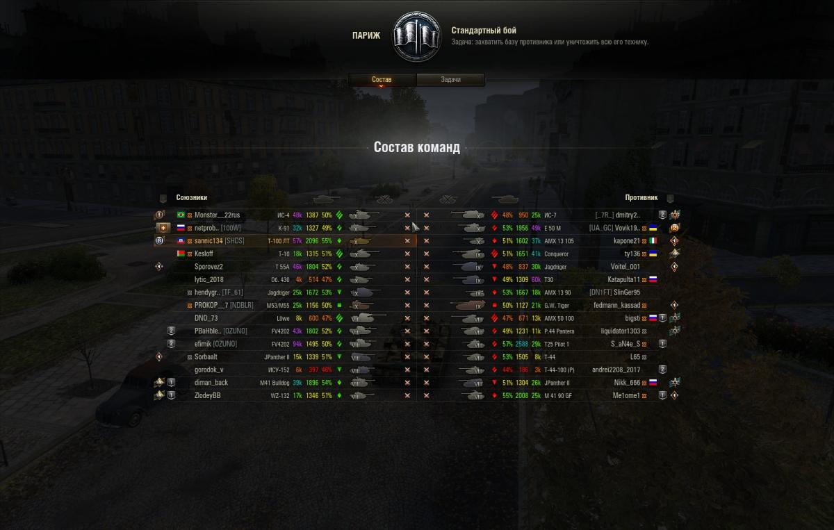 Я сегодня в этом лишнийраз убедился.  Попал на ИСУ   на перевал .Коричневых - лишь по 1 штуке с каждой стороны .В таких случаях,как правило,давят ледник ,что я и написал в чат .( ах да,бой с  десятками,я в..опе  ) .Какой то прыщ на 54 -1 образец  отвечает - "ванга?" И тыкает по карте на объездную дорогу . Вся тима уносится туда ,  на ледник еду лишь я и шведское ПТ  8 . Через пару минут из за поворота на нас вылазят т10 , 704 ,тапов В ,еще какой то тяж и светляк   из советских . Под прикрытием коричневого ,который тут же забирает юдеса .  Пишу в  чат этому козлу -" Убедился " ??? В ответ -  что то вроде " под 50 к.боев  ,а все желтые   ит.д."После боя посмотрел на стату  барана - да , 54 %
