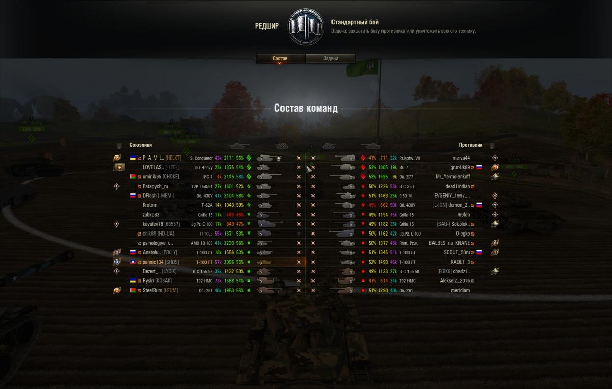 Огромные серые уши со списком команд наверно выглядят круче чем разноцветные?? Как по мне с оленемером гораздо интересней. Да и подсказывают где можно поборзеть , а где аккуратно от обороны. А на личную стату глубоко фиолетово. 48%вые могут позволить себе просто слиться побырому, а не рвать задницу вытягивая  явно сливной бой, чего вы себе не позволяете. Да и среди 48%вых в основном бесплатные "халявщики" которых ВГ ставит на убой, сошлюсь на слова feenords  где он не соврал - "Попробуйте купить парочку прем8, ВГ обратно все подкрутит, инфа100500%, дополнительно даже по ИСУ накинет показателей к ттх." Так что нет смысла сравнивать шахматных гроссмейстеров с дворовыми футболистами - и те и те играют, а приоритеты разные.