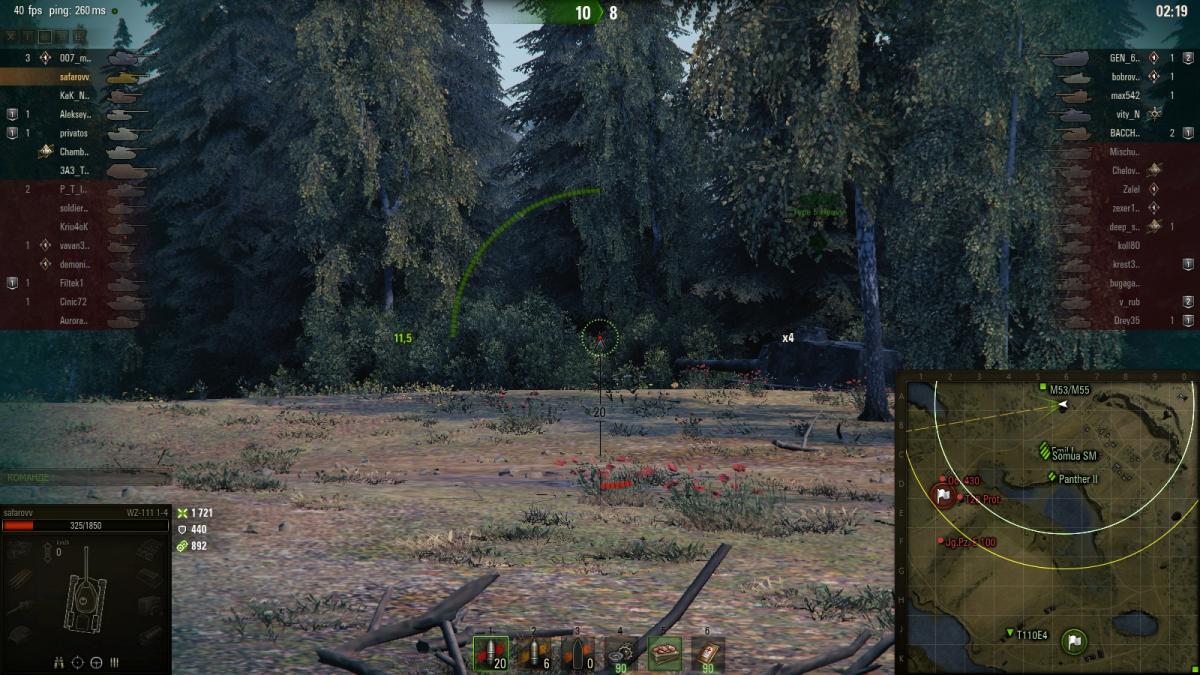 Мне как-то Маусчлен попался на Энске - я из дальних кустов то попасть не мог, то пробить, и БП в том числе, а после третьего выстрела меня засветили через кучу кустов - и всё, привет. Чотко, зашибись, могЁм.
