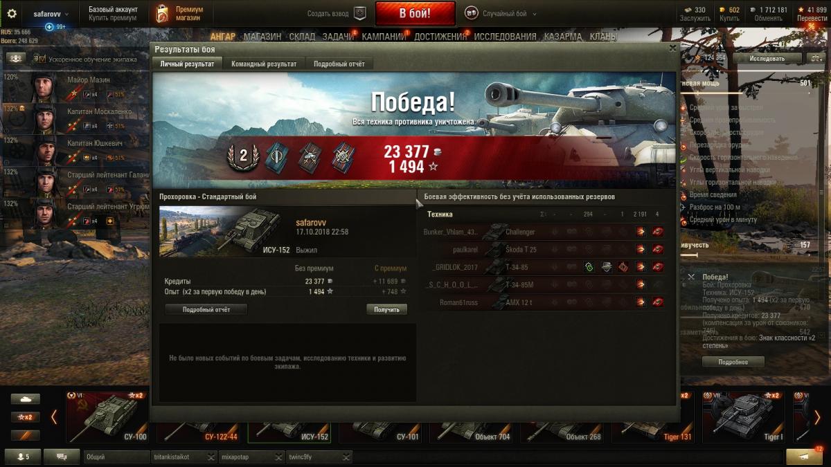Почему-то захотелось поиграть на ИСУ-152 (впервые, ранее такого желания не возникало)